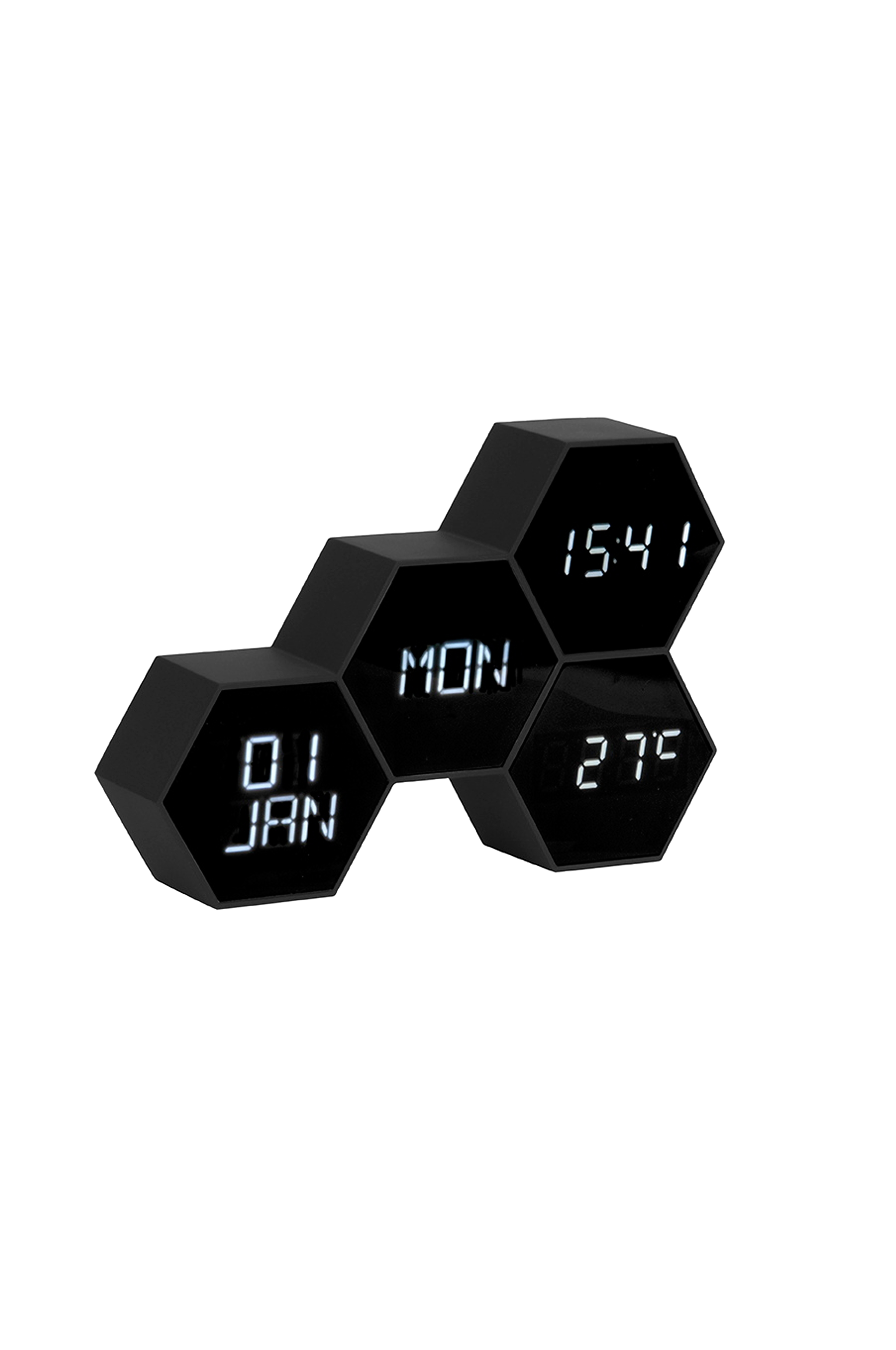 Dette moderne digitale vækkeur fra the mærket karlsson er en stor hjælp til at vågne til tiden. Men det er ikke alt, hvad six in the mix kan gøre! Dette sekskantede designvækkeur viser, hvilken dag, dato og temperatur det er. Det reagerer også på berøring eller lyd, er det ikke nemt?