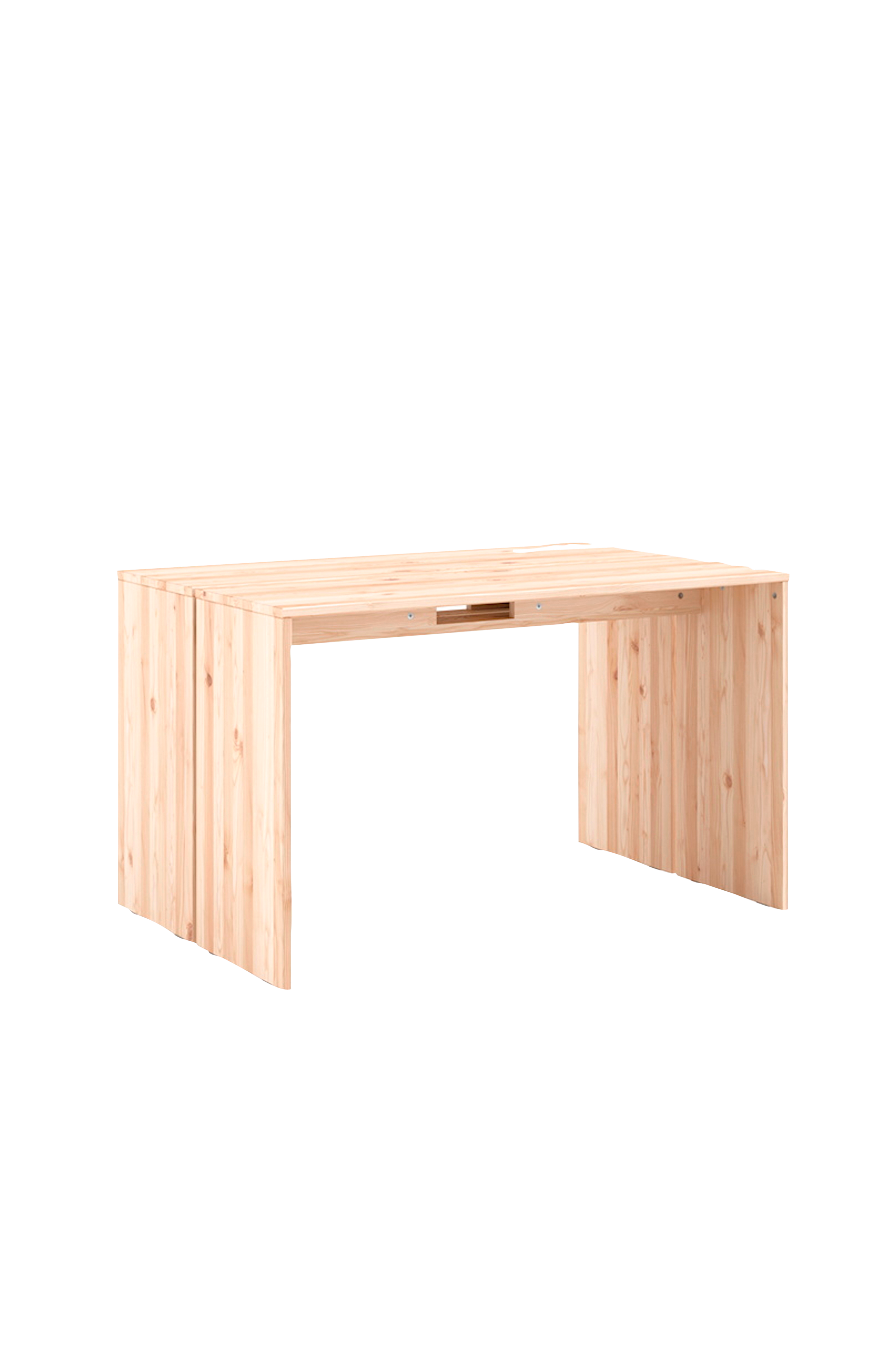 Fleksibel . Foranderligt . Functional join-in-spisebordet er et robust bord i massivt fyrretræ, designet af c.f. Møller Architects til dem, der ønsker rene linjer i deres hjem og fleksible løsninger. Bordet består af to borde, som nemt kan skilles ad og flyttes. Enten side om side som en lang arbejdsstation eller et langt spisebord, eller adskilt, når du vil have flere arbejdsområder. Bordets overordnede look har en unik detalje - et smalt mellemrum, der giver lethed til designet og går igen på bænken og taburetten i serien. De klare trælameller og veludførte detaljer understreger det robuste håndværk, mens en integreret kabelbakke sikrer, at ledninger og opladere altid er organiseret og ude af syne. Join-in-spisebordet er et bord, der tilpasser sig din hverdag - ædelt, funktionelt og med alle detaljer valgt med omhu.