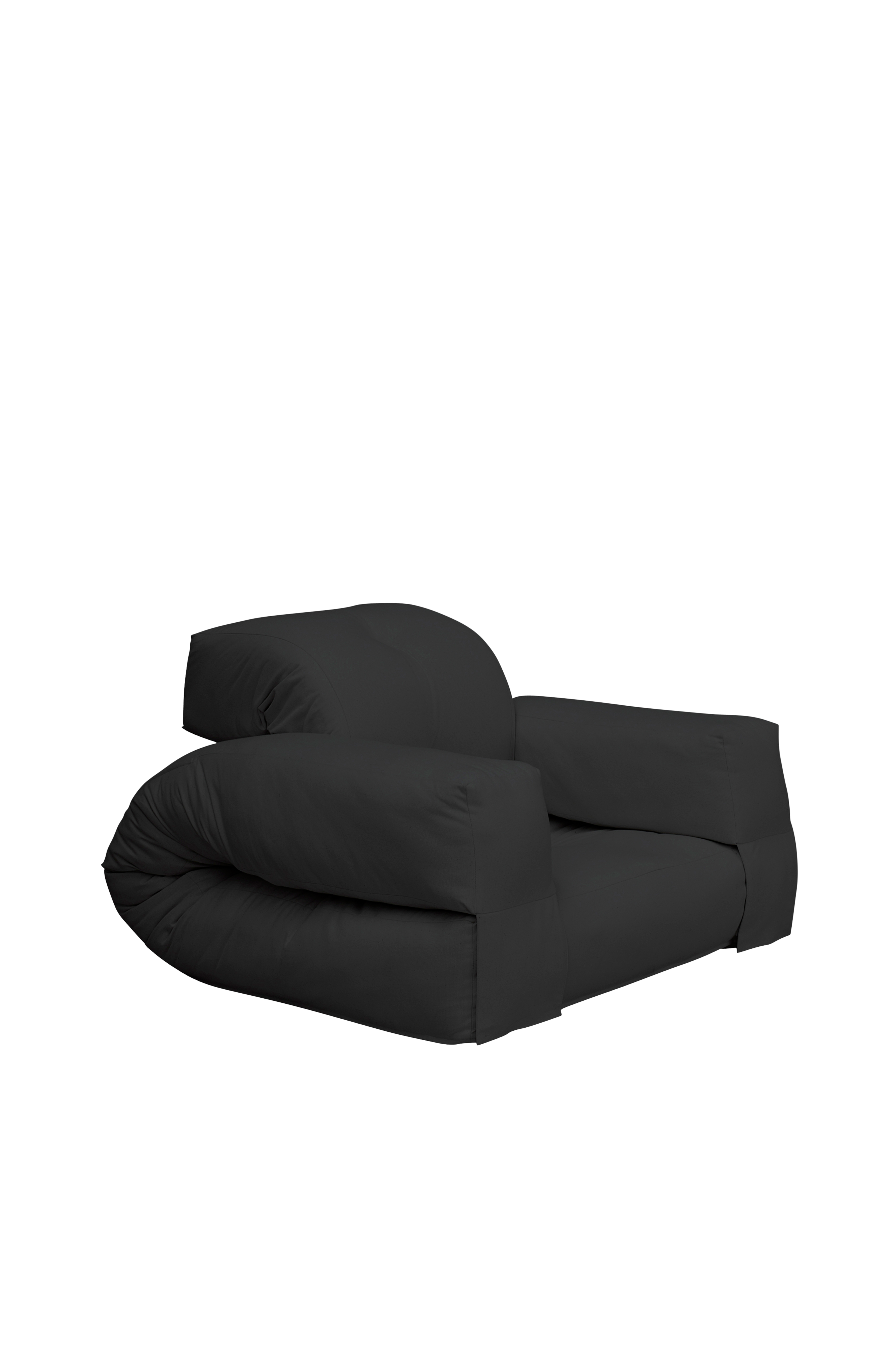 Sit . Unfold . Sleep - Hippo er en behagelig futonlænestol som nemt kan forvandles til en madras. Hvis du løsner bagsiden af lænestolen og løfter armlænene lægger Hippo sig fladt ned og bliver til en tyk og fyldig madras som er perfekt til overnattende gæster. Design af Anders Backe, Anne-Sofie Voss, Ida Sofie Lange, Lars Wigh og Troels Rask Pedersen for Karup Design.