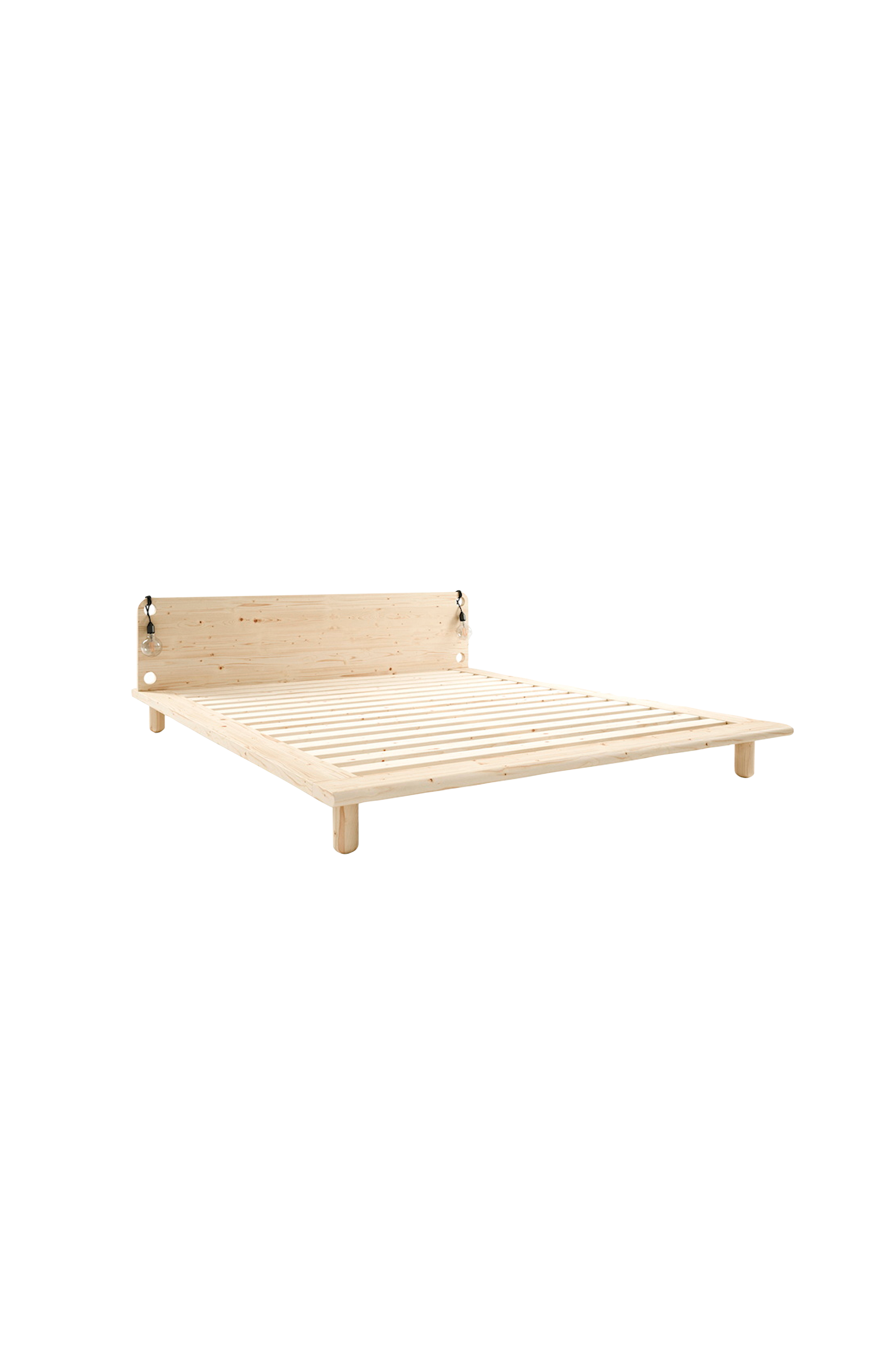 Læs . Butik . Sleep the peek bed er designet med både skønhed og funktionalitet for øje. Den brede ramme er fremstillet af massivt fscâ®-certificeret fyrretræ og giver smart opbevaring til dine vigtigste ting ved sengen - uanset om det er din telefon, dine yndlingsbøger eller andre personlige ting. Det minimalistiske hovedgærde har to smart placerede huller, der er designet til at holde de medfølgende lamper, så du kan vikle ledningerne rundt og vælge de perfekte pærer til at fuldende looket. peek bed kombinerer det bedste fra smart opbevaring og hyggelig belysning, så det er mere end bare en seng - det er et rum til afslapning og bekvemmelighed. bed lamperne leveres med en 3 meter lang stofledning, EU-stik og er beregnet til e27-pærer (medfølger ikke). Madras sælges separat.