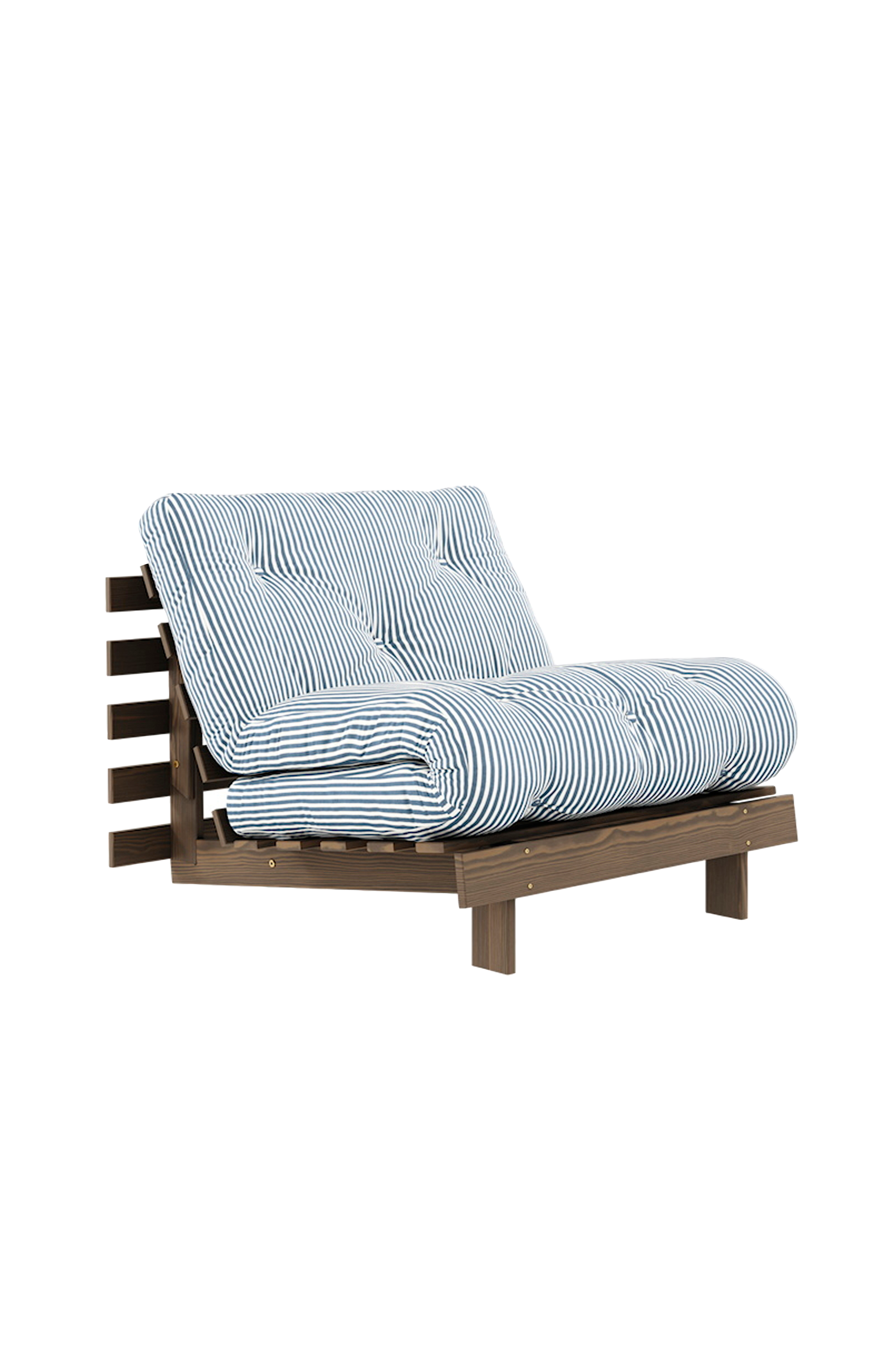 Et tidløst møbel - roots 90 er essensen af karups designdna: Du får ikke kun en sofa, men også en seng og en behagelig lænestol. Ved at lægge forbenene ned og justere ryggen får du en behagelig loungestol. Ved at sænke ryggen helt får du en dejlig seng, hvor du kan lade op med rødder i jorden. Dobbelt op på ryggen, fold madrassen over, og nu har du en loungestol i almindelig højde. Roots 90 forvandler sig hurtigt og nemt - ligesom magi. Er du med på ideen? Bemærk, at alle vores futon-produkter er håndlavede, så du kan opleve små forskelle i størrelse og vægt.