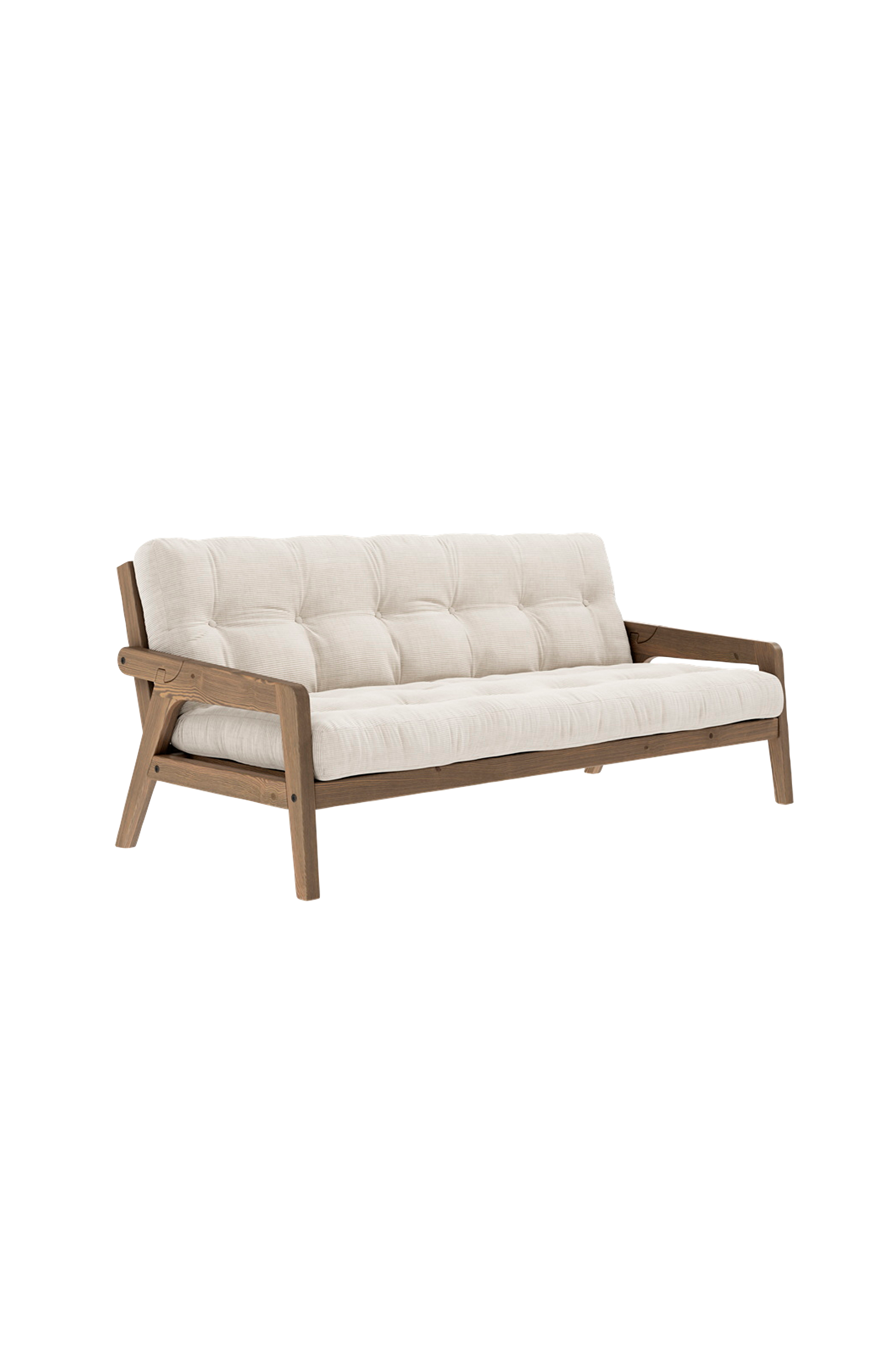 Share . Release . Nap . Grab sovesofa er lavet til at dele. Både som sofa og som dobbeltseng når den er slået ud. Armlænene er designet til nemt at konvertere og fungere som de bagerste ben på dobbeltsengen ved at vende den om - hvilket gør det til den nemmeste sofa-til-seng konvertering til dato. En behagelig futonmadras medfølger. Designet af Says Who for Karup Design.