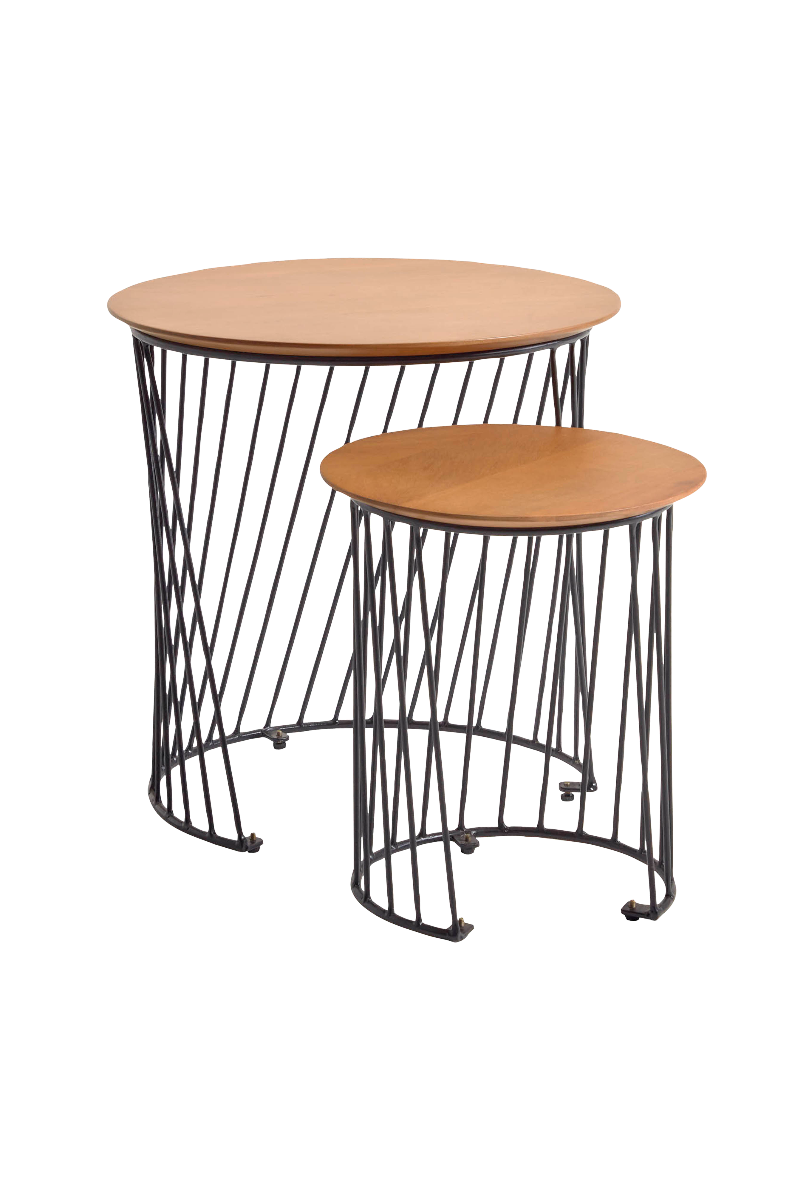 Leska to sideborde med en diameter på 50 cm og 35 cm er fremstillet af massivt mangotræ og har et stel af metalstænger, der er svejset fast del for del og malet matsort. De er også indskudsborde, så du kan placere det ene bord under det andet for at spare plads. Bredde: 50 cm. Dybde: 50 cm. Højde: 50 cm.