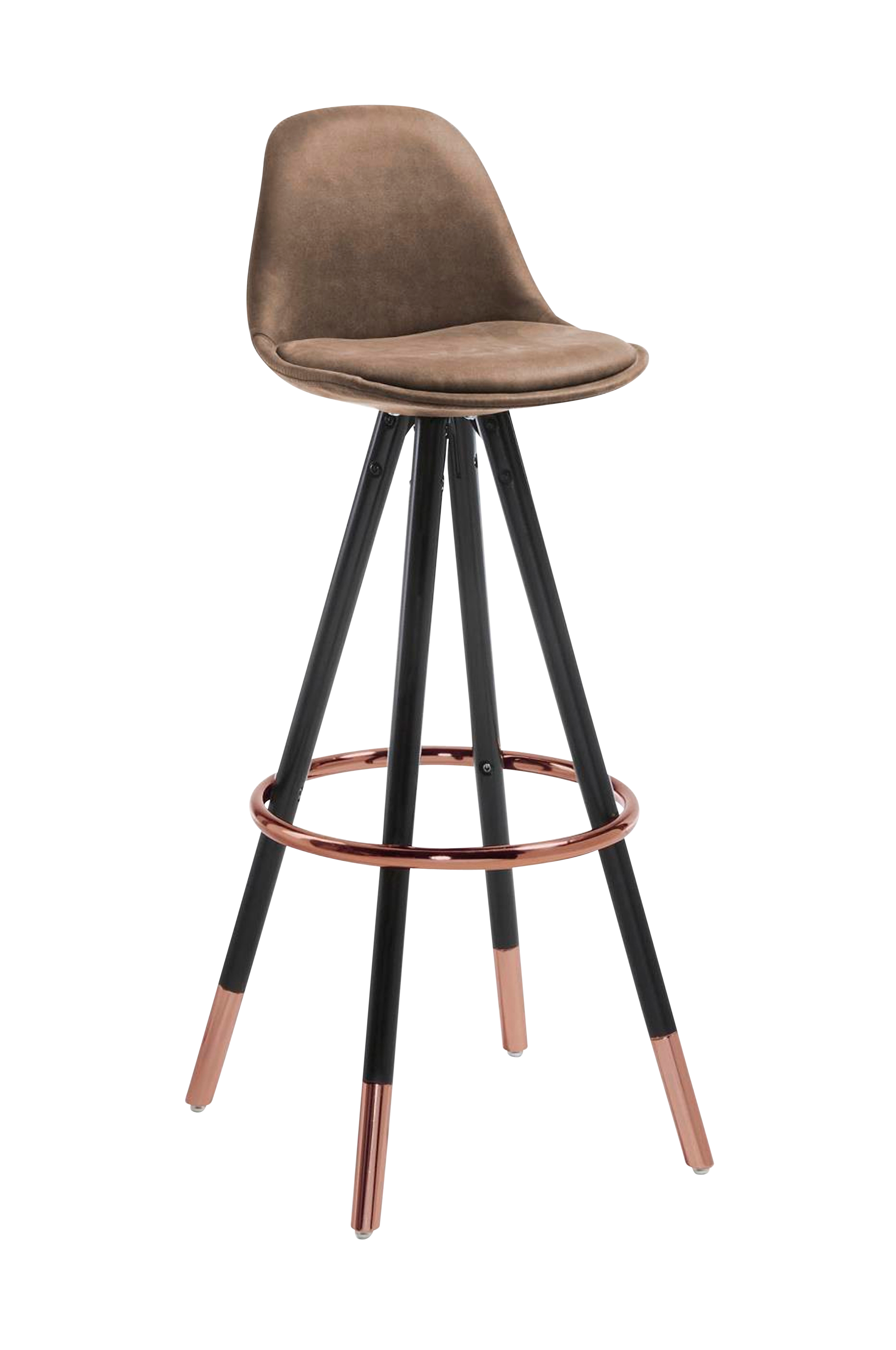 Barstol med sæde betrukket med Cowboy-stof. Lakerede træben og ring med kobberfinish.