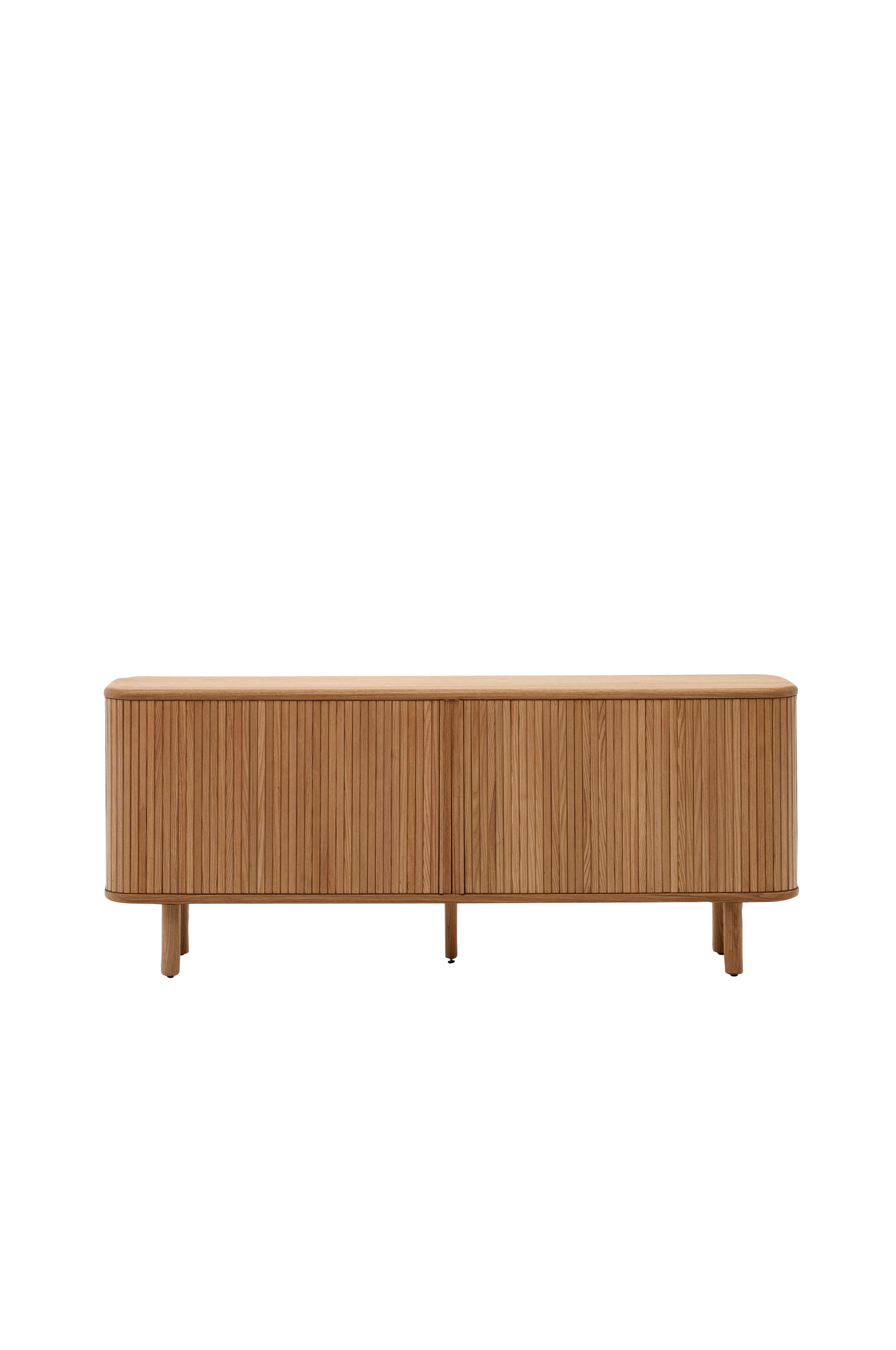 Kave Home-teamet har skabt kollektionen Mailen med et moderne design af afrundede former, lavet af askefinér og skydedøre af trælameller, der gør den til en autentisk stjerne. Produktets bredde: 180 cm. Produktets dybde: 40 cm. Produktets højde: 75 cm.