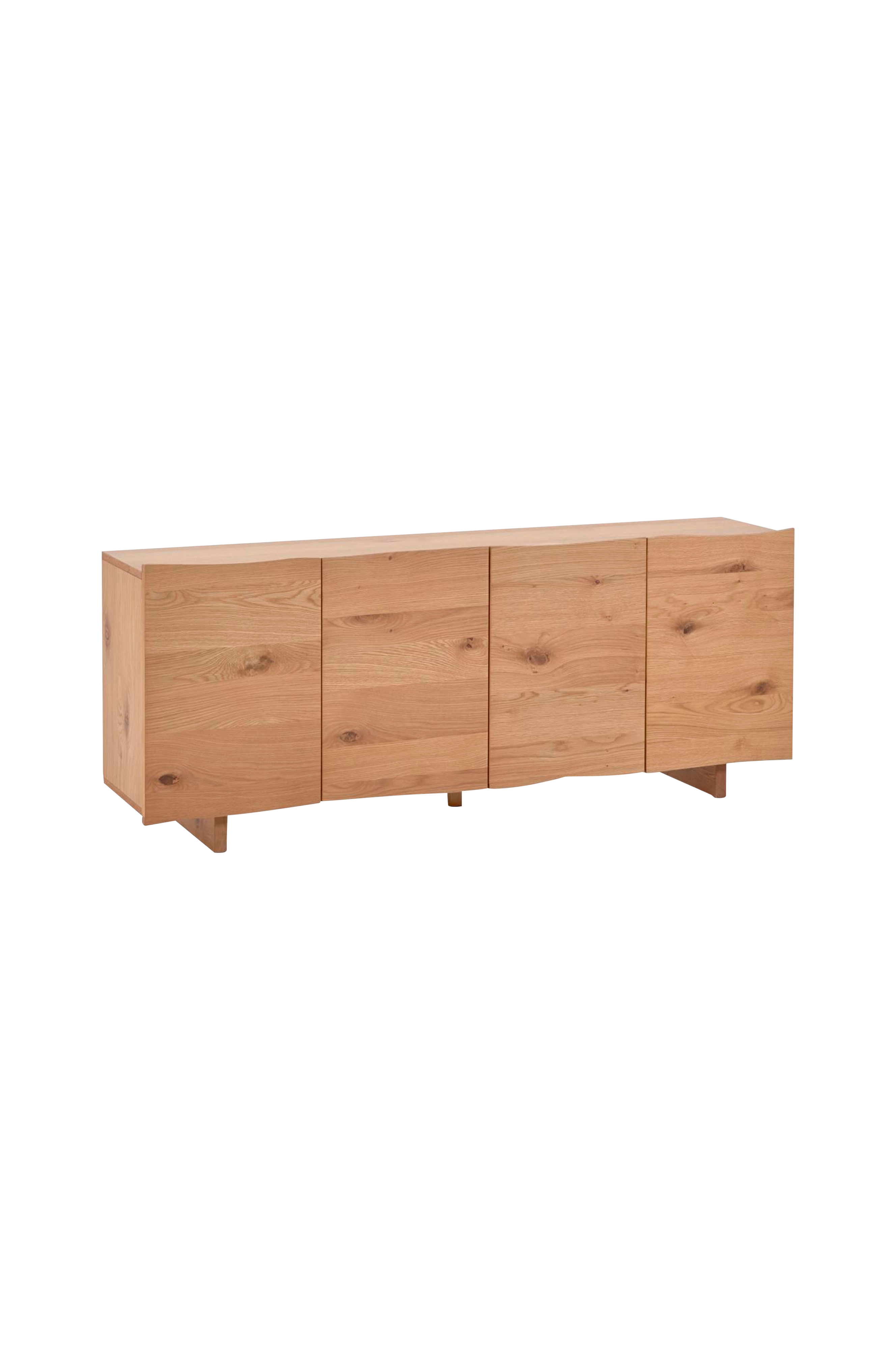 Rashas finér af holdbar eg har en uregelmæssig form som gør den helt unik. Et design fra Kave Home som sætter fokus på træet med de specielle toner, former og fibermønstre og de afrundede kanter som skaber organiske, eksklusive former. Leveres usamlet.