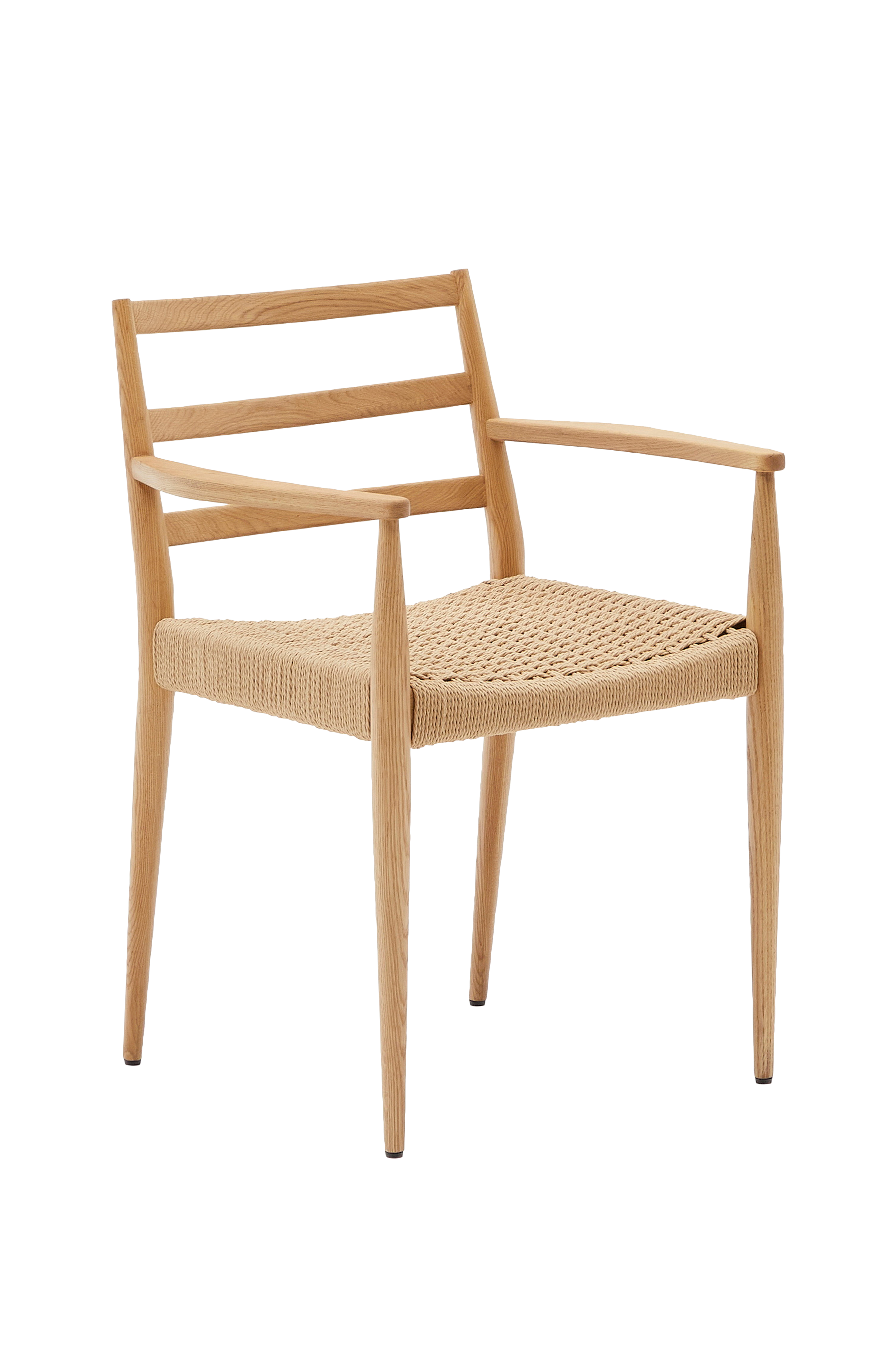 analy er et traditionelt design med en struktur af massivt egetræ og et sæde lavet af håndvævet papirreb. Derudover har den den ideelle finish til at lade naturen komme ind i dit hjem.