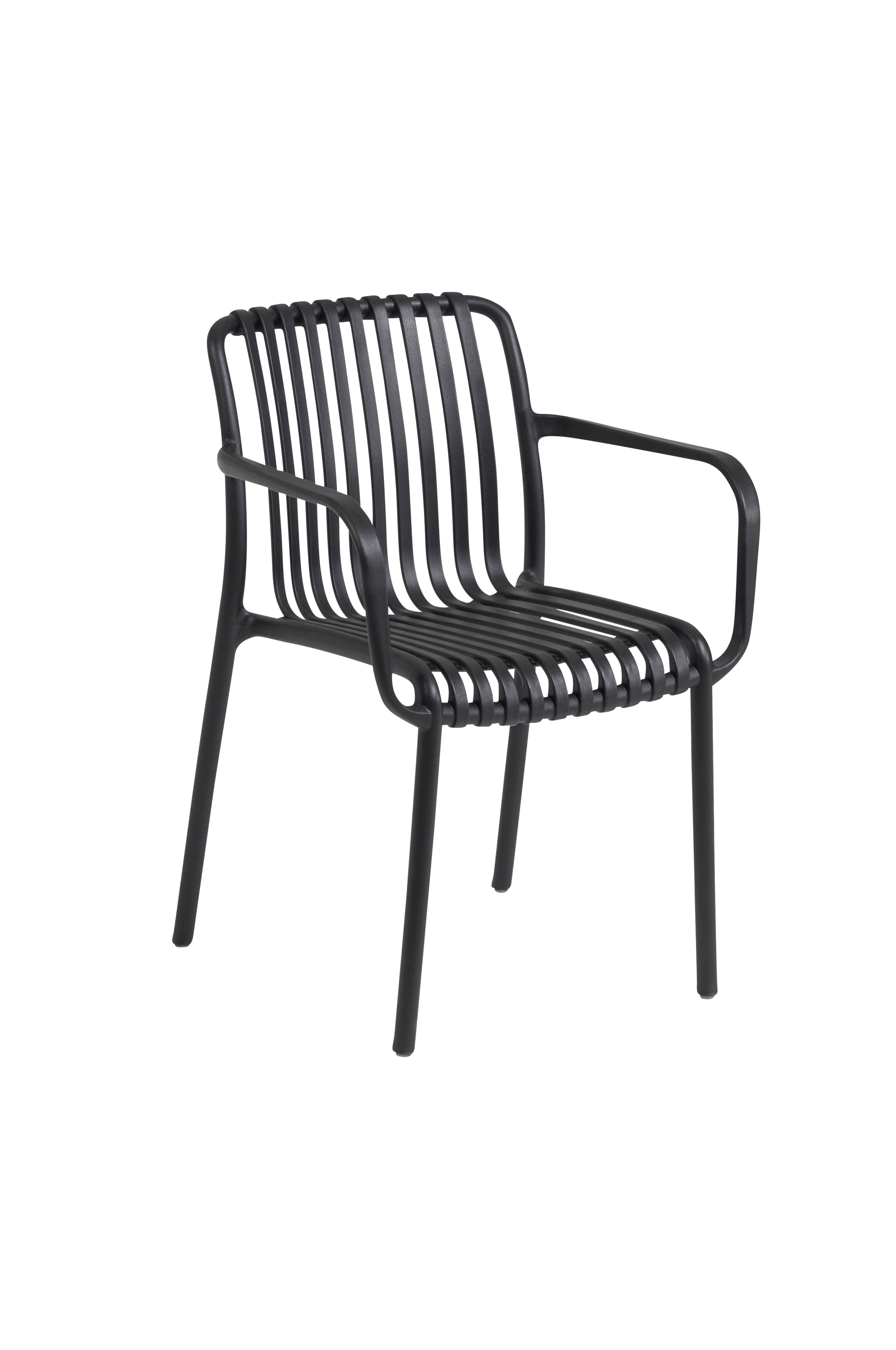 Isabellini havestol af plast. Stabelbar og sælges i 4-pak. Til udendørs brug. Samlet.