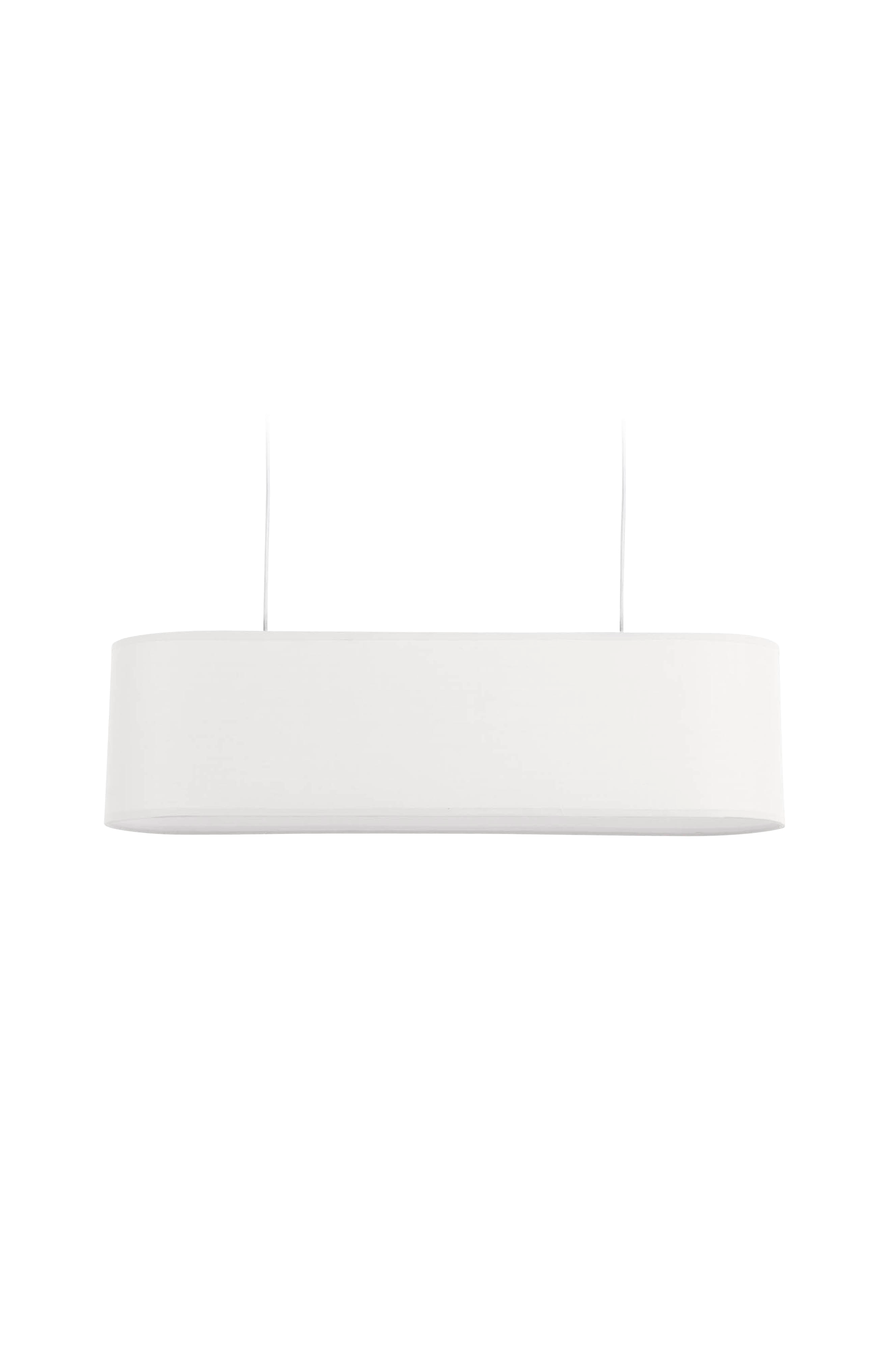 Loftsskærm med oval form lavet af hvidt hør. Armatur og loftkontakt købes separat.