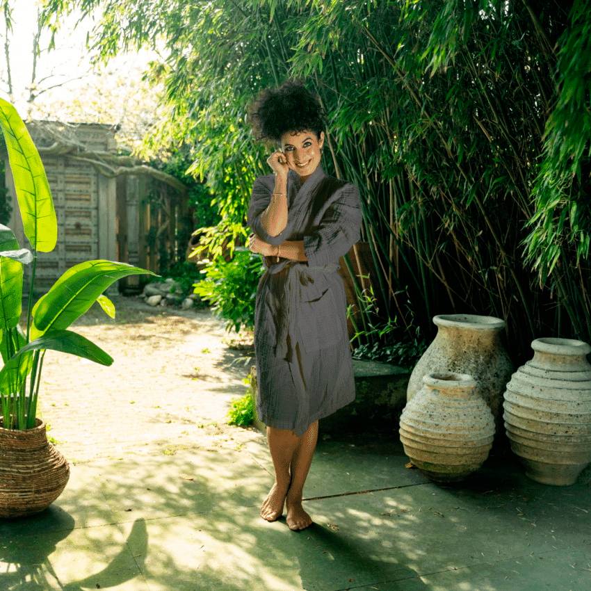 Badekåben i Cato-kollektionen er lavet af blød økologisk bomuld: musselin og kommer pakket i en smuk opbevaringspose af eget økologisk bomuldsmusselinstof. Den bløde tekstur af dette stof har et smukt udseende og giver en dejlig varm og god følelse mod huden og har desuden den egenskab at være temperaturregulerende. Morgenkåben er i kimonomodel: halvlang, med praktiske sidelommer og et flot langt bælte. Findes i str. s, m, l, xl