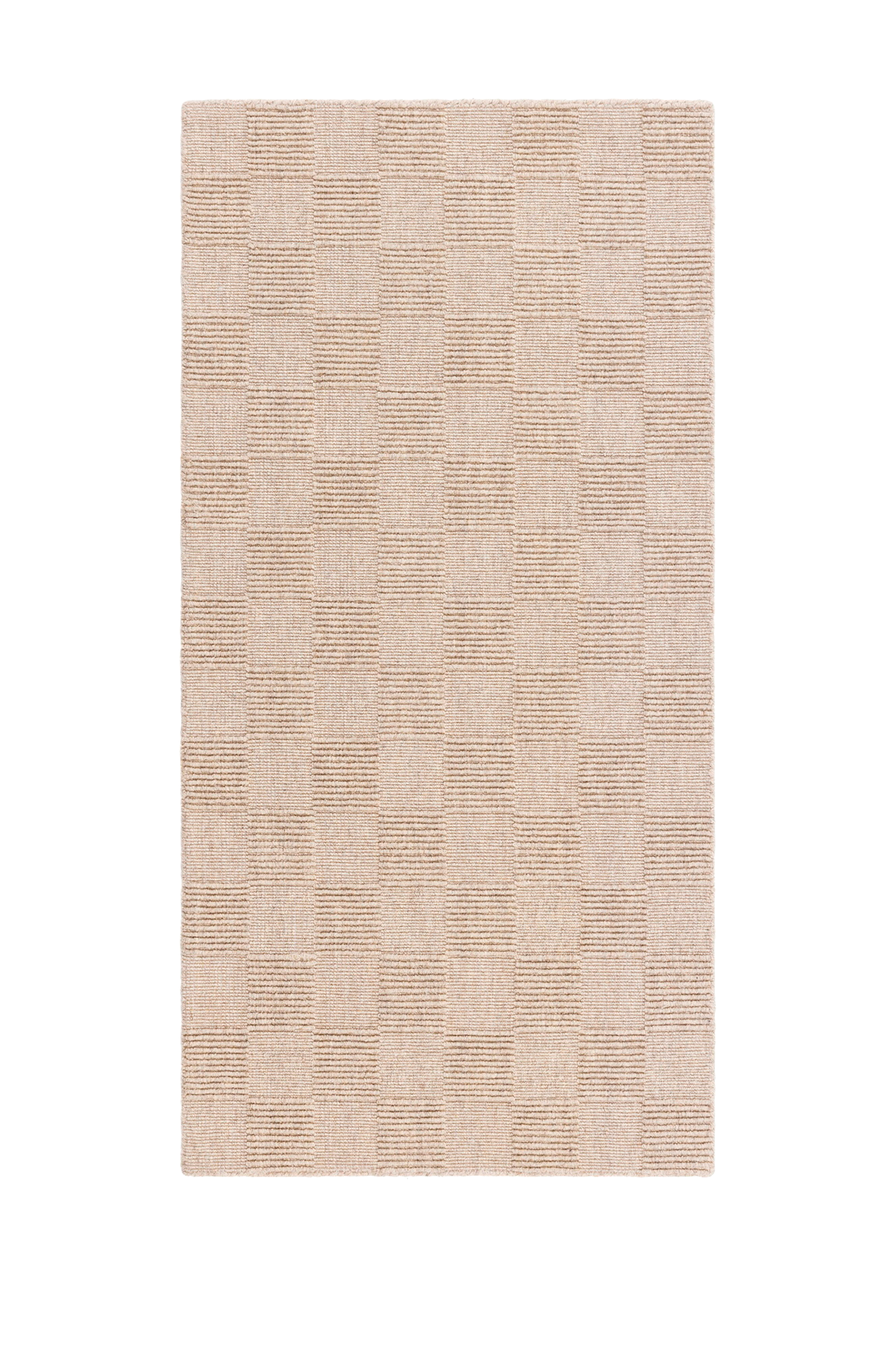 sydney er et eksklusivt tæppe fremstillet af 100 % uld, designet til at kombinere tidløs elegance med funktionelt design. Det karakteristiske ternede mønster, hvor glatte og hævede overflader veksler i perfekt harmoni, skaber en dynamisk tekstur og et sofistikeret look.