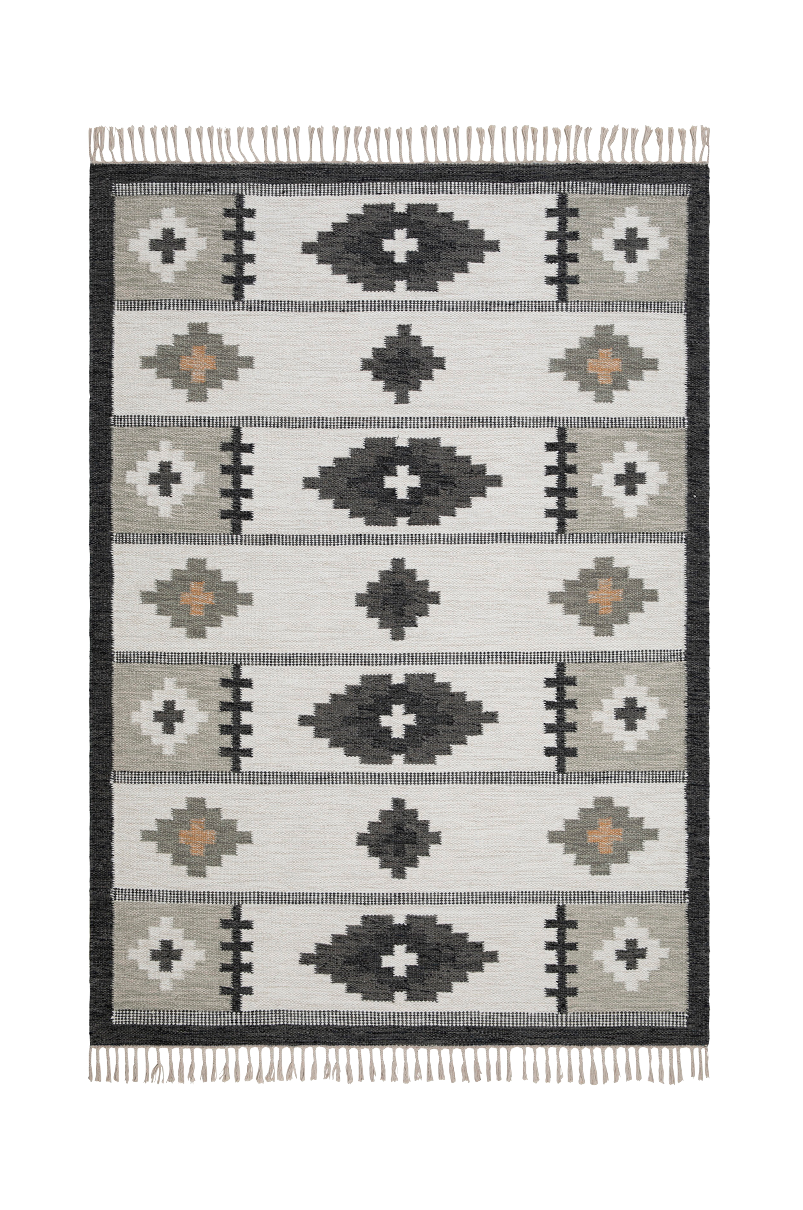 Arvika er et slidstærkt tæppe, håndvævet ved hjælp af rölakan-teknikken. Det har et moderne mønster inspireret af traditionel rölakan og er indrammet af en tydelig kant. Tæppet afsluttes med en stilfuld bomuldskant langs de korte ender. Takket være uldens naturlige modstandsdygtighed over for pletter kan små pletter nemt tørres væk. Det ser lige så godt ud i en læsekrog som under et spisebord.