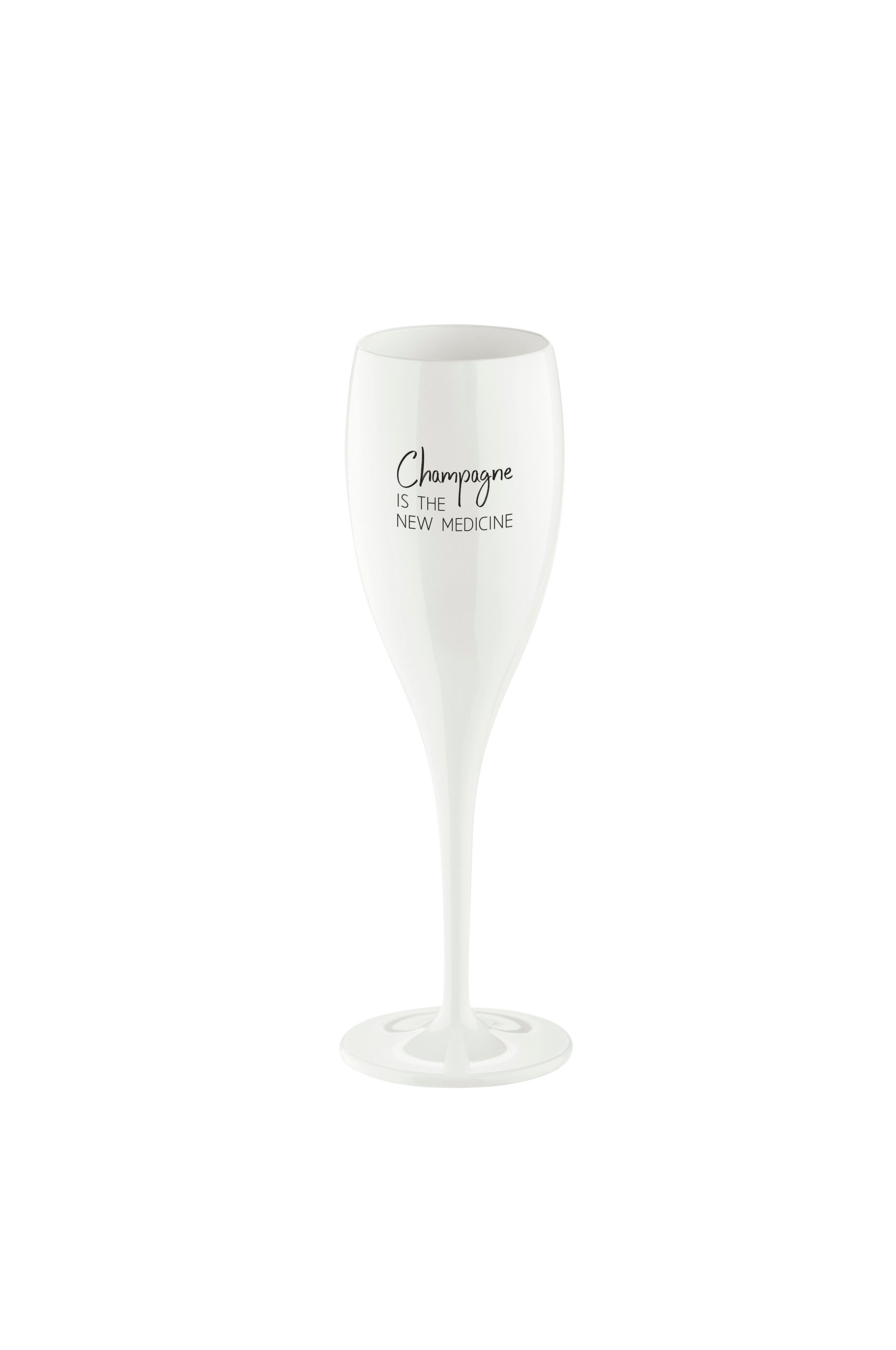Champagneglas med print. Et sjovt champagneglas i højkvalitetsmateriale, der holder drinken afkølet. Den lange form på glasset holder boblerne i drinken i lang tid. Glasset er ubrydeligt og ideelt til events, strandfester, bådture og som serveringsglas i pub- og restaurantmiljøer. Fremstillet i Tyskland i 100% genanvendelig, miljøvenlig termoplast. Kan vaskes i opvaskemaskine. Cheers no.1 er et godt alternativ til engangsplastikprodukter. Det ikoniske design, med et print til enhver lejlighed, gør glasset alsidigt og værdsat som gave. Volumen: 100 ml