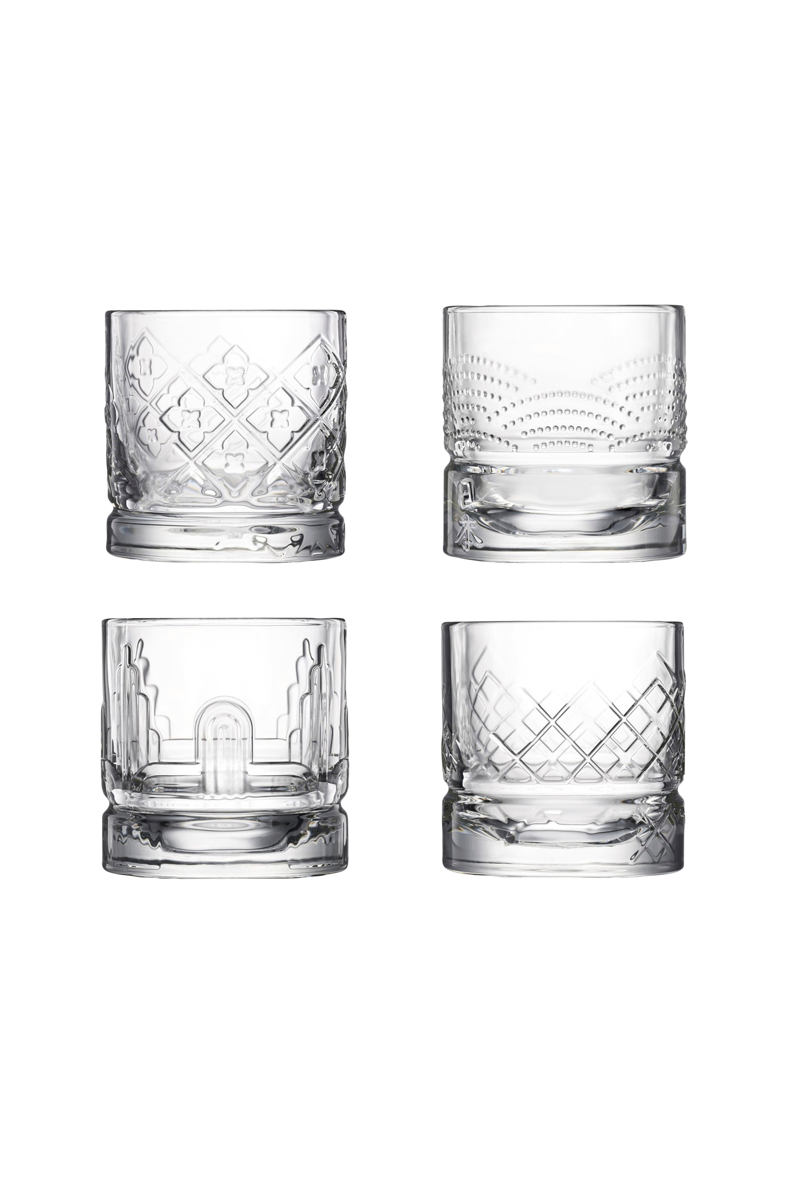 Whiskyglas dandy sæt med 4 stk. fra det franske mærke la rochère. Glassene har en tyk bund, der går over i arkitektoniske mønstre, som giver whiskyen en smuk lysreflektion. Hvert glas kan rumme 30 cl. Dandy-serien er designet af studio la racine og har fire symbolske mønstre, der skaber lyseffekter og fremhæver whiskyens nuancer.