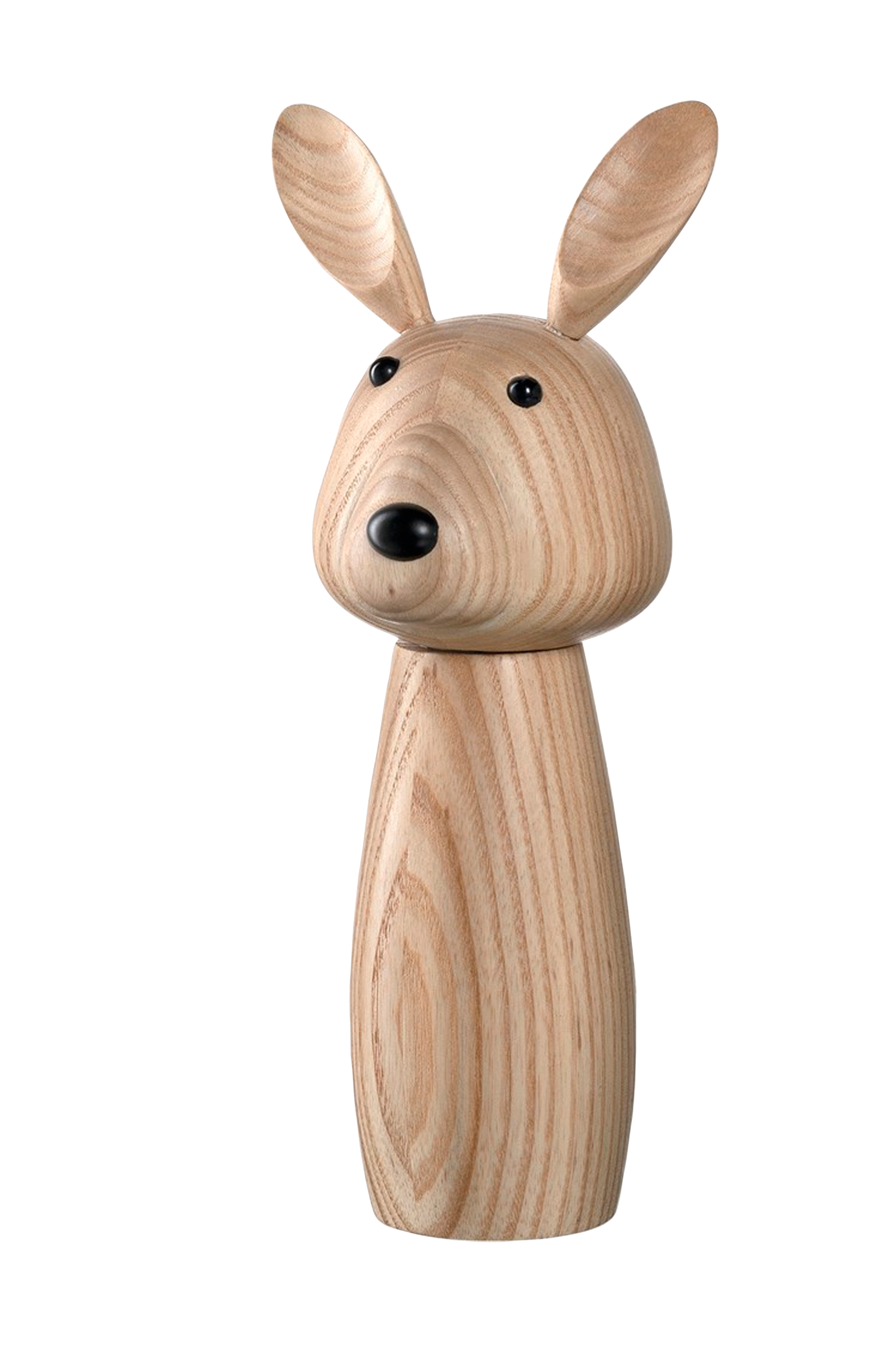 Fin krydderikværn af asketræ. Krydderikværnen er formet som en kanin og giver borddækningen et ekstra pift.