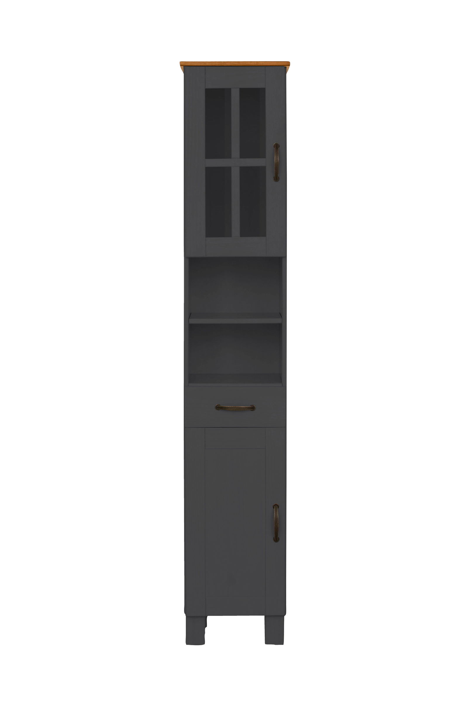 Et ryddeligt hjem og et træmøbel af høj kvalitet ù du får begge dele med dette høje badeværelsesskab. Skuffen kan trækkes helt ud og giver dig ekstra opbevaringsmuligheder. Hylderne bag lågerne kan bruges variabelt, så du selv kan bestemme højden på de enkelte rum. Metalhåndtagene er stabile og slides derfor ikke så hurtigt. Den maksimale belastningskapacitet er omkring 10 kg. Skabet fås i flere farvemuligheder. Højskabet udstråler landlig romantik. For eksempel i kombination med møbler lavet af træ eller rattan suppleres den hjemlige atmosfære stilfuldt.