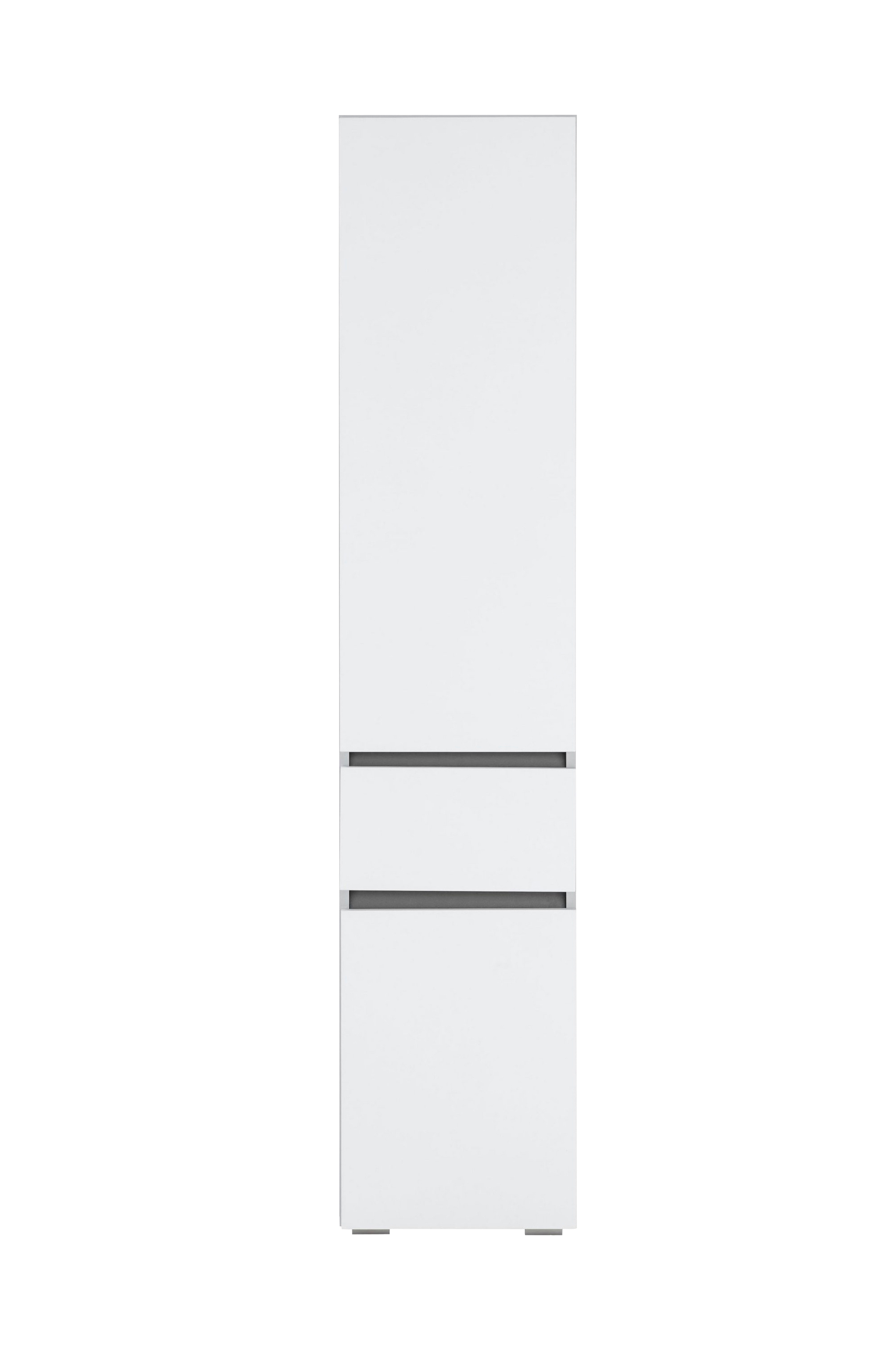 Det slanke og høje badeværelsesskab skaber tilstrækkelig opbevaringsplads. Det optager kun lidt plads takket være det pladsbesparende og slanke design. Det tidløst moderne design kan nemt indarbejdes i dit hjem. Det tofarvede design med grebsfrie fronter fremhæver det tidløse og minimale design. Opbevaringsskabet er udstyret med låger og en praktisk skuffe. Afhængigt af situationen i rummet kan du udskifte dørhængslerne. Indvendigt giver badeværelsesskabet plads til toiletsager og meget mere. Takket være de højdejusterbare hylder kan rummenes størrelse bestemmes individuelt. Badeværelsesmøblerne af høj kvalitet er fremstillet af fsc-certificerede træmaterialer med vedligeholdelsesvenlige lakerede overflader. Fås i forskellige farver.