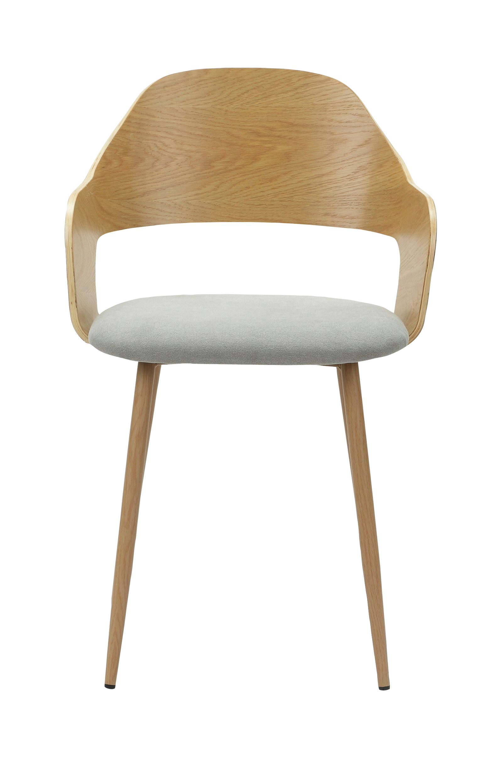 Et sæt med to spisestole, der kombinerer stil og holdbarhed. Hver stol står på fire robuste metalben, der giver pålidelig støtte. De er fremstillet af træ af god kvalitet, hvilket sikrer lang levetid og holdbar kvalitet. Sædet er betrukket med blødt stof, der giver en behagelig og indbydende fornemmelse. Ryglænet i egetræsfiner tilføjer et naturligt touch, der passer til forskellige indretningsstilarter. Med en sædehøjde på 50 cm tilbyder disse stole ergonomisk siddekomfort til daglig brug. En maksimal belastningskapacitet på 120 kg sikrer styrke og pålidelighed. Designet med elegance og praktisk anvendelighed for øje bringer de både komfort og raffinement til ethvert spisestue.