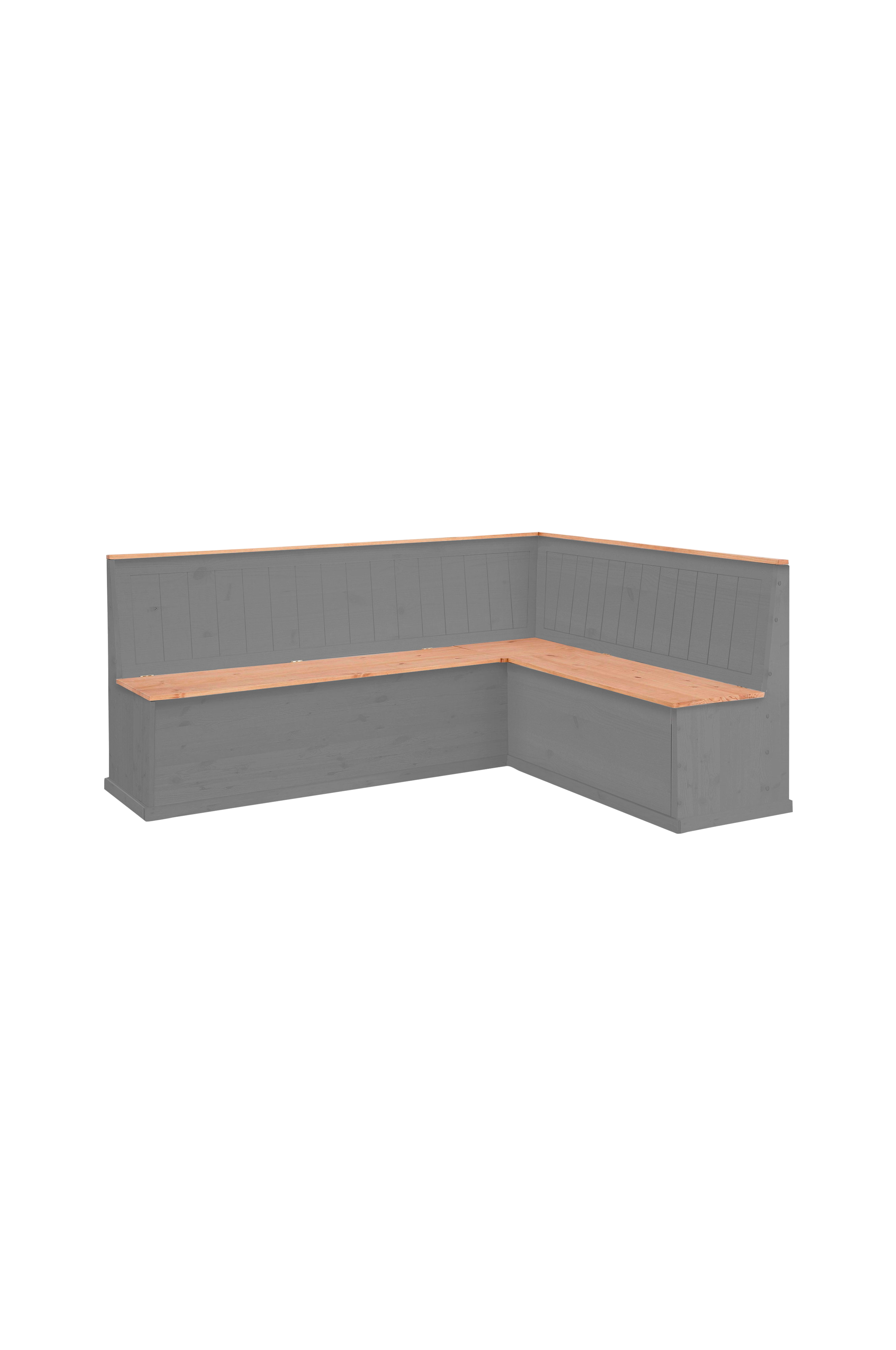 Hjørnebænken med praktisk opbevaringsplads udstråler en naturlig flair i din spisestueindretning. Den supplerer dit interiør i den trendy landlige stil og er designet med smukke detaljer i trælook. Med sine afdæmpede farver kan bænken nemt kombineres med dine eksisterende møbler. Under sædet er der nyttig opbevaringsplads til f.eks. hynder, tekstiler eller boligtilbehør. Bænken er lavet af massivt fyrretræ af høj kvalitet. Passer ind i enhver boligstil: hjørnebænken med praktisk opbevaringsplads.