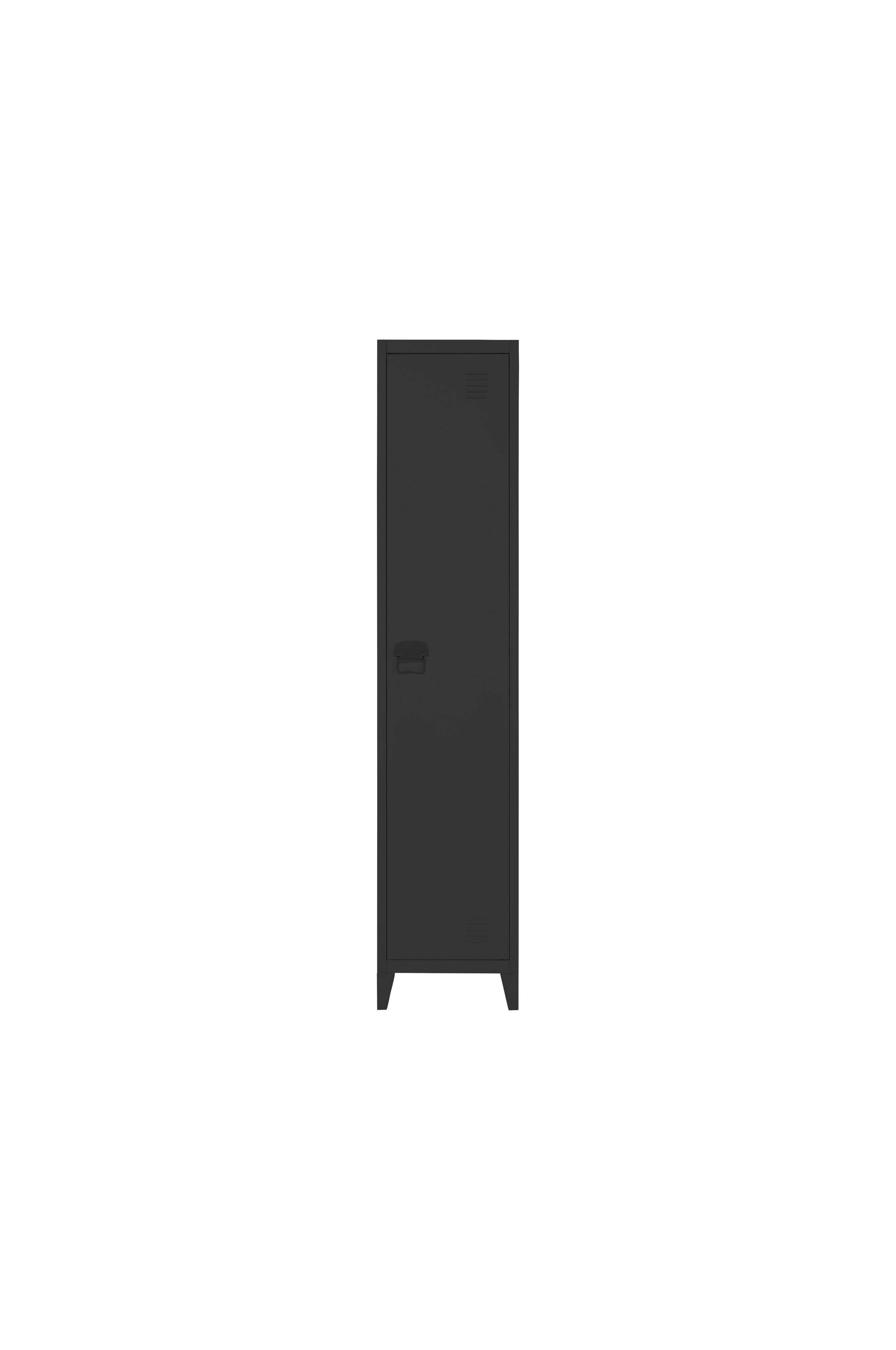 Dette højskab sikrer en minimalistisk accent i indretningen. Det reducerede design i skandinavisk stil passer til mange boligstile og passer perfekt ind i eksisterende møbler. Skabet er lavet af metal. Det kan bruges forskelligt, ikke kun i arbejdsværelset, i opholds- eller soveområdet, men også i gangen og korridoren. Det giver plads nok til bøger, tøj og andre ting på flere hylder bag døren. Kan låses, hvis det er nødvendigt.