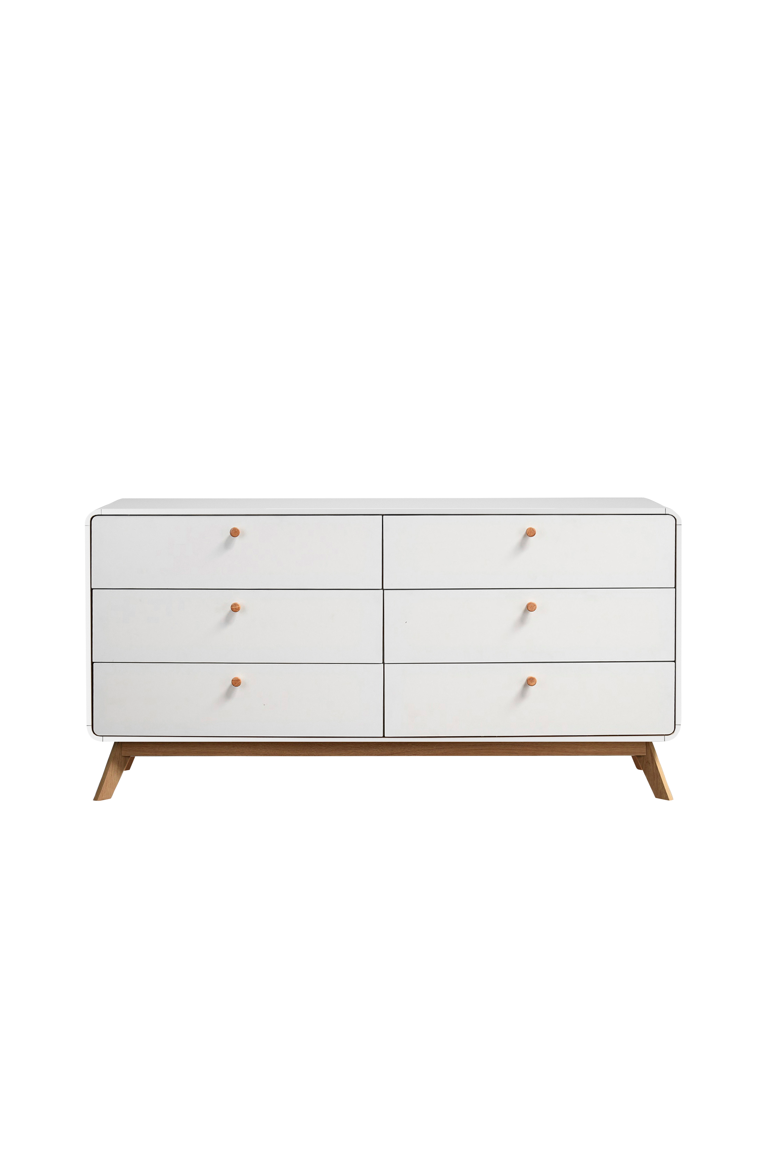 Uanset om det er som moderne skænk i stuen, kommode til soveværelset, skænk i entreen eller som kommode på børneværelset - den rummelige kommode præsenterer sig som et praktisk møbel med et moderne design. Takket være det enkle, moderne design kan kommoden kombineres med mange forskellige indretningsstile og bruges som skænk i entreen, kommode i soveværelset eller som tv-skænk. Overfladebelægningen giver dig et særligt vedligeholdelsesvenligt produkt. Du kan undvære kemikalier til rengøring - en let fugtig klud er tilstrækkelig til at rengøre den vandtætte overflade.