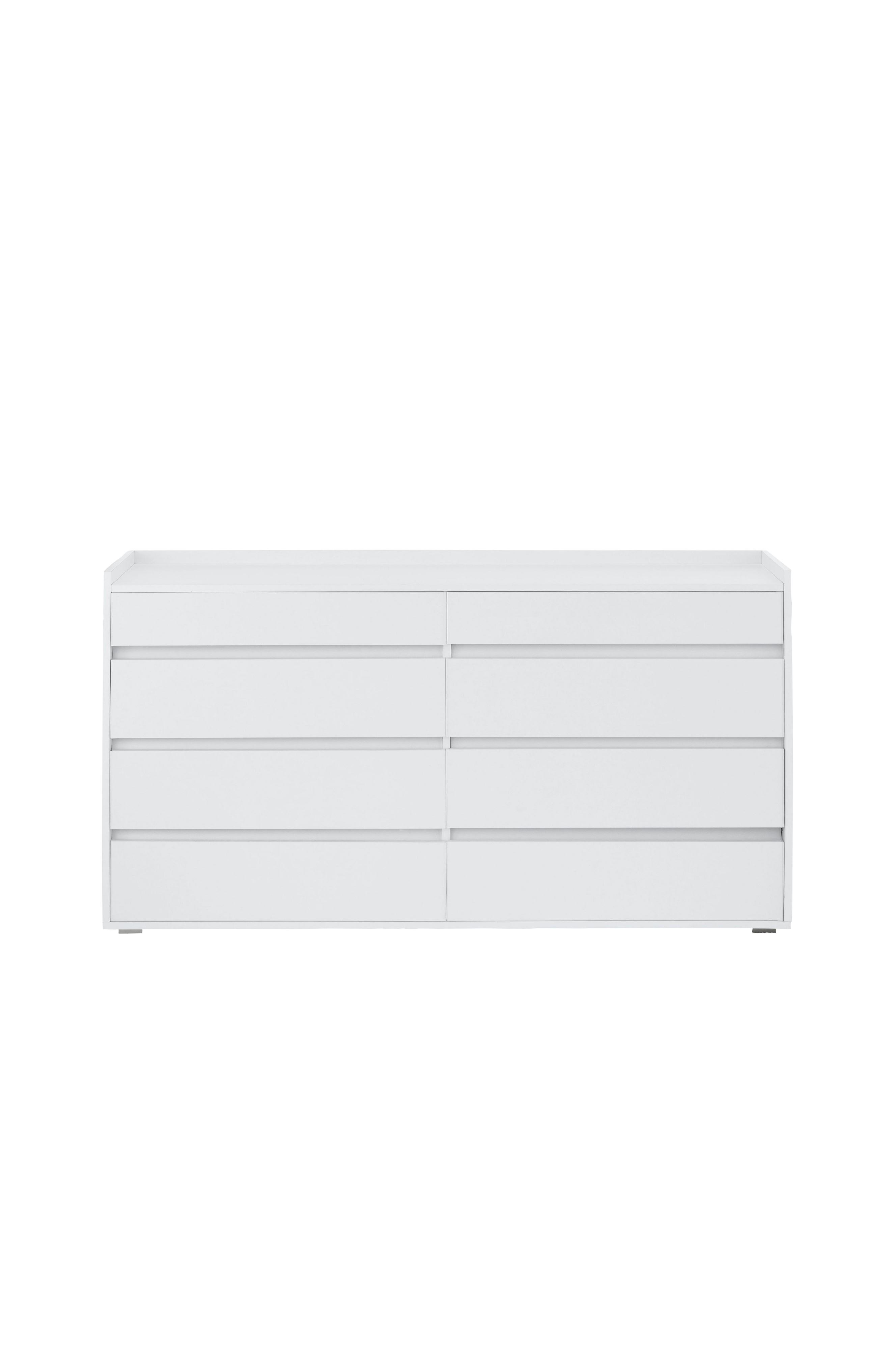 Denne kommode i et moderne design er pladsbesparende og praktisk. Den inspirerer med et mat overfladelook og er holdt i enkle farver. Det betyder, at skænken passer til mange boligstile - fra trendy til tidløs. Afhængigt af dine personlige indretningspræferencer kan du stille skænken i stuen, soveværelset eller entreen. I en række skuffer er der masser af opbevaringsplads til tekstiler, dokumenter og boligtilbehør. Hvad angår kvalitet, imponerer skænken med sin fremstilling af stabile materialer. Et ægte opbevaringsplads-talent: kommoden i moderne design.