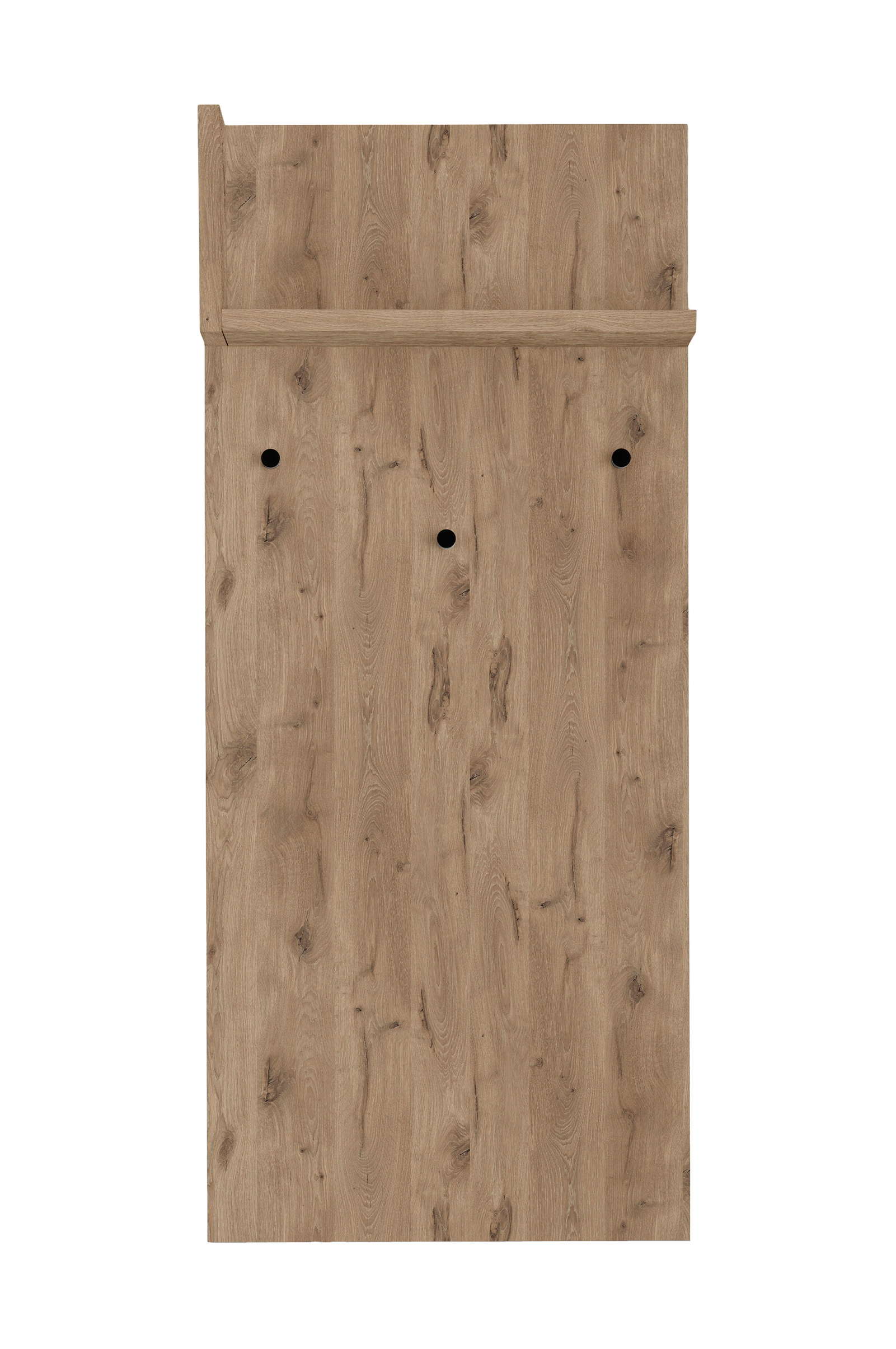Garderobepanelet i moderne design er en praktisk opbevaringsløsning i din entre og forhal. Det imponerer med sit diskrete farvedesign, som passer ind i mange boligstilarter. Med sine smalle dimensioner passer vægpanelet perfekt ind i små rum. Det er udstyret med metal kroge, hvor du kan hænge jakker, frakker og tasker. Over krogen er der en hylde til hatte og andet tilbehør. Der er anvendt stabile materialer til fremstilling af panelet. Generelt tilbyder garderobepanelet i moderne design tilstrækkelig plads til dit tøj.