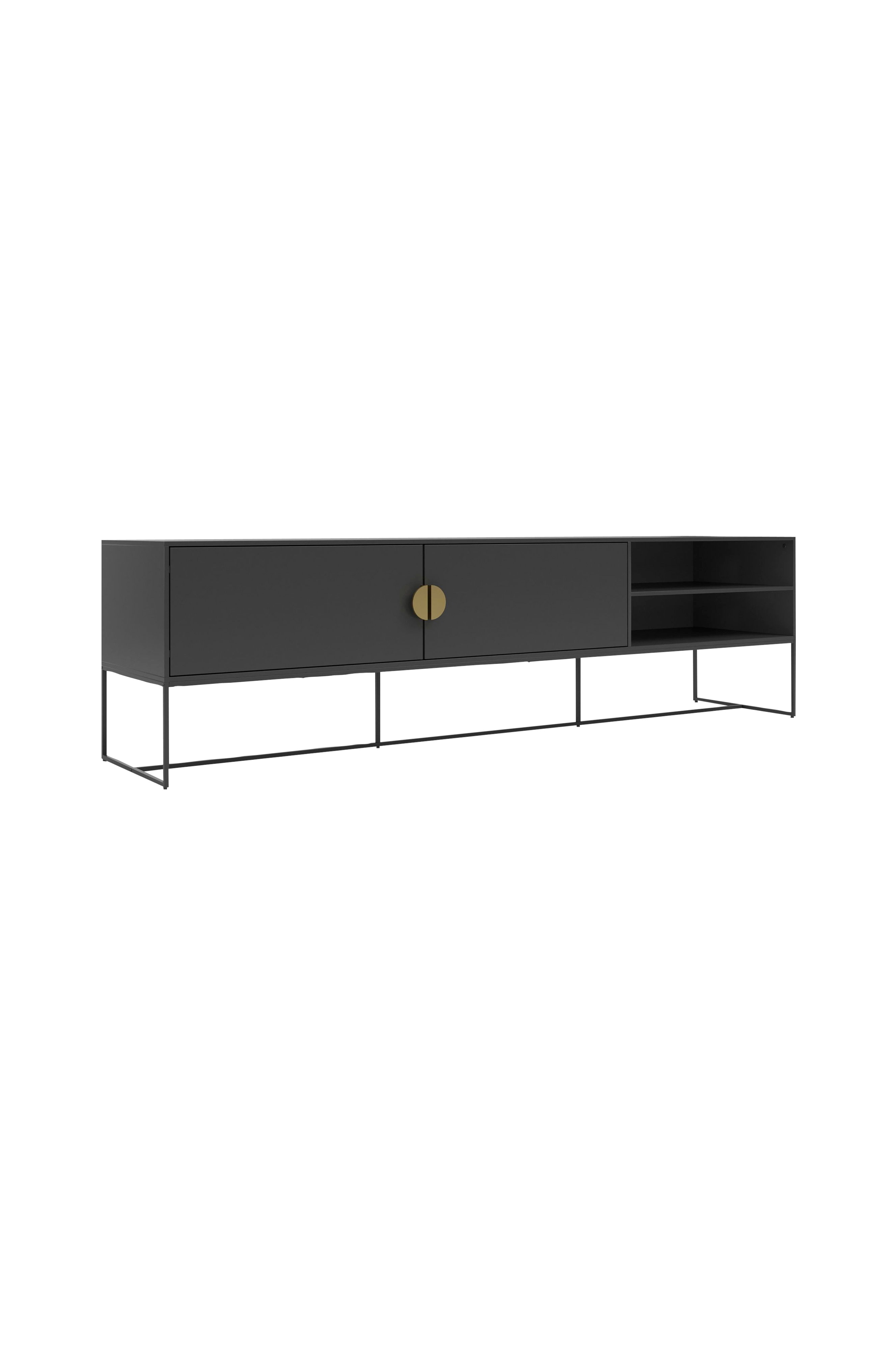 Lowboard er en stilfuld og funktionel tilføjelse til dit soveværelse, din stue eller din spiseplads. Den lave højde er perfekt til medie- eller lydsystemer med en kabelåbning på bagsiden, som gør det nemt at organisere. Lavet af slidstærk spånplade, der er modstandsdygtig over for vridninger, og med minimalistiske metalhåndtag. Med en belastningskapacitet på op til 45 kg giver dette møbel et moderne touch til din boligindretning og forbedrer både stil og funktionalitet.