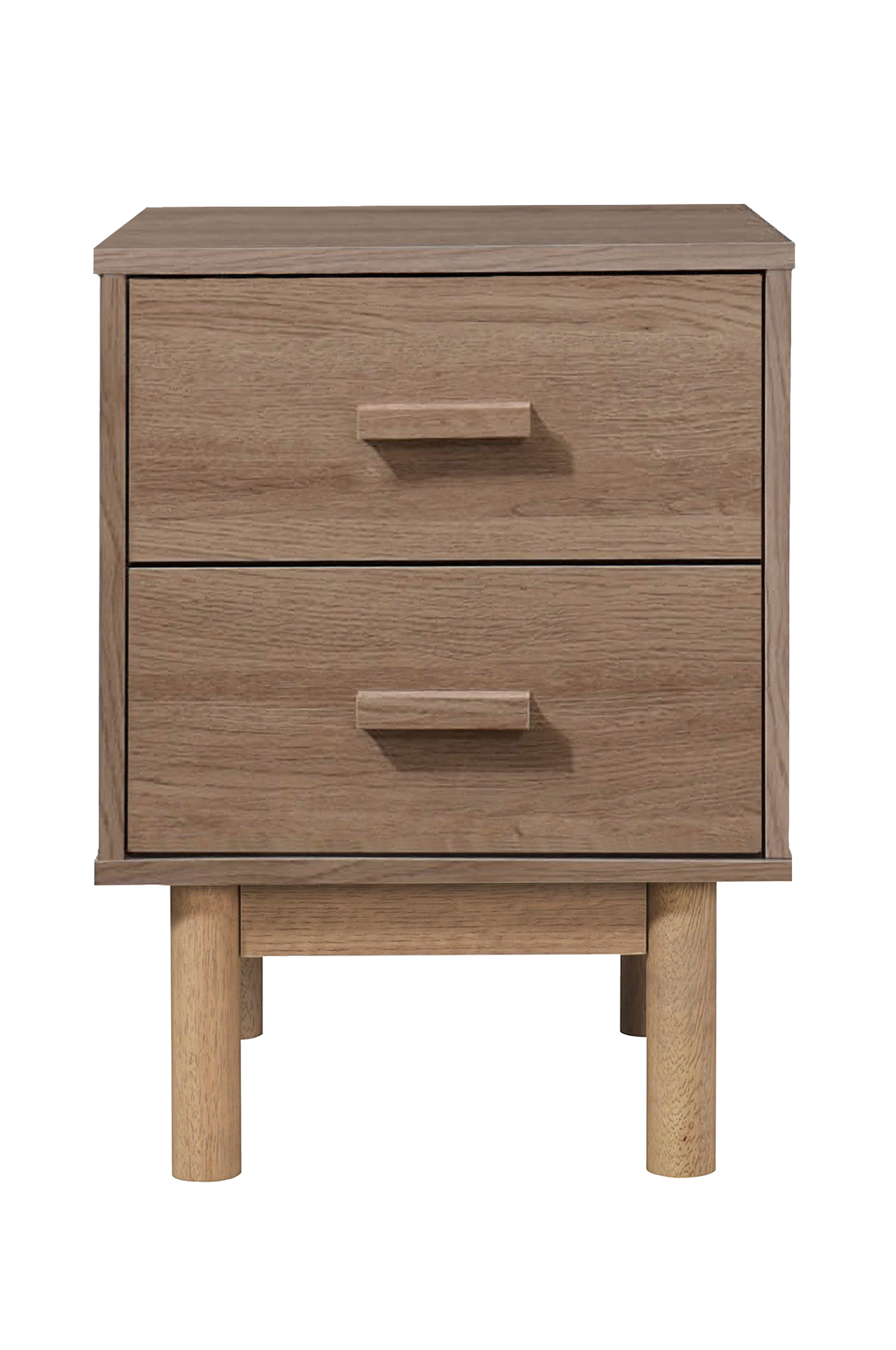 melanie natbord er et praktisk og elegant møbel, som vil pynte i dit soveværelse. Natbordet er lavet af mdf, der er folieret i en varm og naturlig egetræsfarve, som skaber en hyggelig og indbydende atmosfære. Natbordet har to skuffer, der giver rigelig opbevaringsplads til dine ejendele, f.eks. bøger, briller eller telefon. Skufferne har træhåndtag, som gør dem nemme at åbne og lukke. Natbordet har et slankt og moderne design, der passer til dit soveværelse. melanie natbord er en fantastisk måde at tilføje stil og bekvemmelighed til din seng.