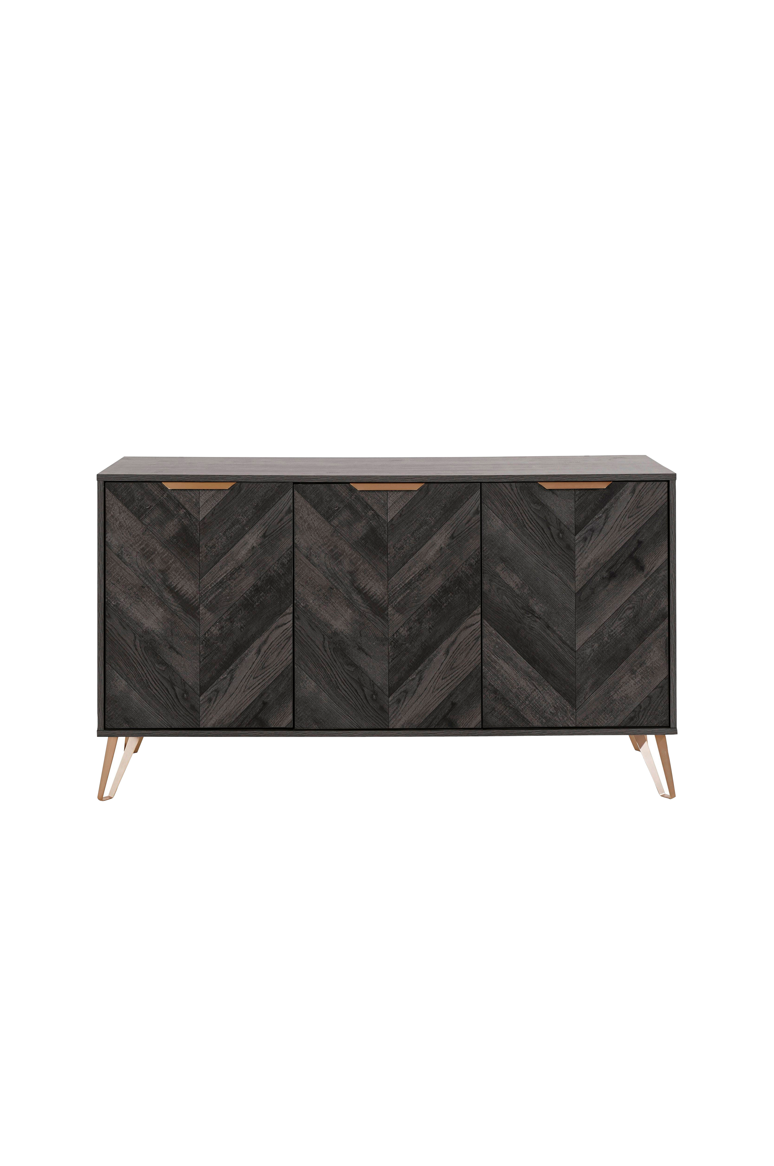 Uanset om det er i stuen, soveværelset eller entreen - med denne skænk i et hyggeligt wood look skaber du mere opbevaringsplads og plads til din fladskærm eller smukke dekorative elementer. De justerbare hylder giver dig maksimal fleksibilitet. Stabilt og bæredygtigt forarbejdet af spånplader. Skænken består hovedsageligt af stabile spånplader og overbeviser derfor med sin solide robusthed. De moderne metalhåndtag er holdbare og understreger stilen. Skænken understøttes af hårnålefødder i metal. Dit nye møbel kan belastes med op til 20 kg.