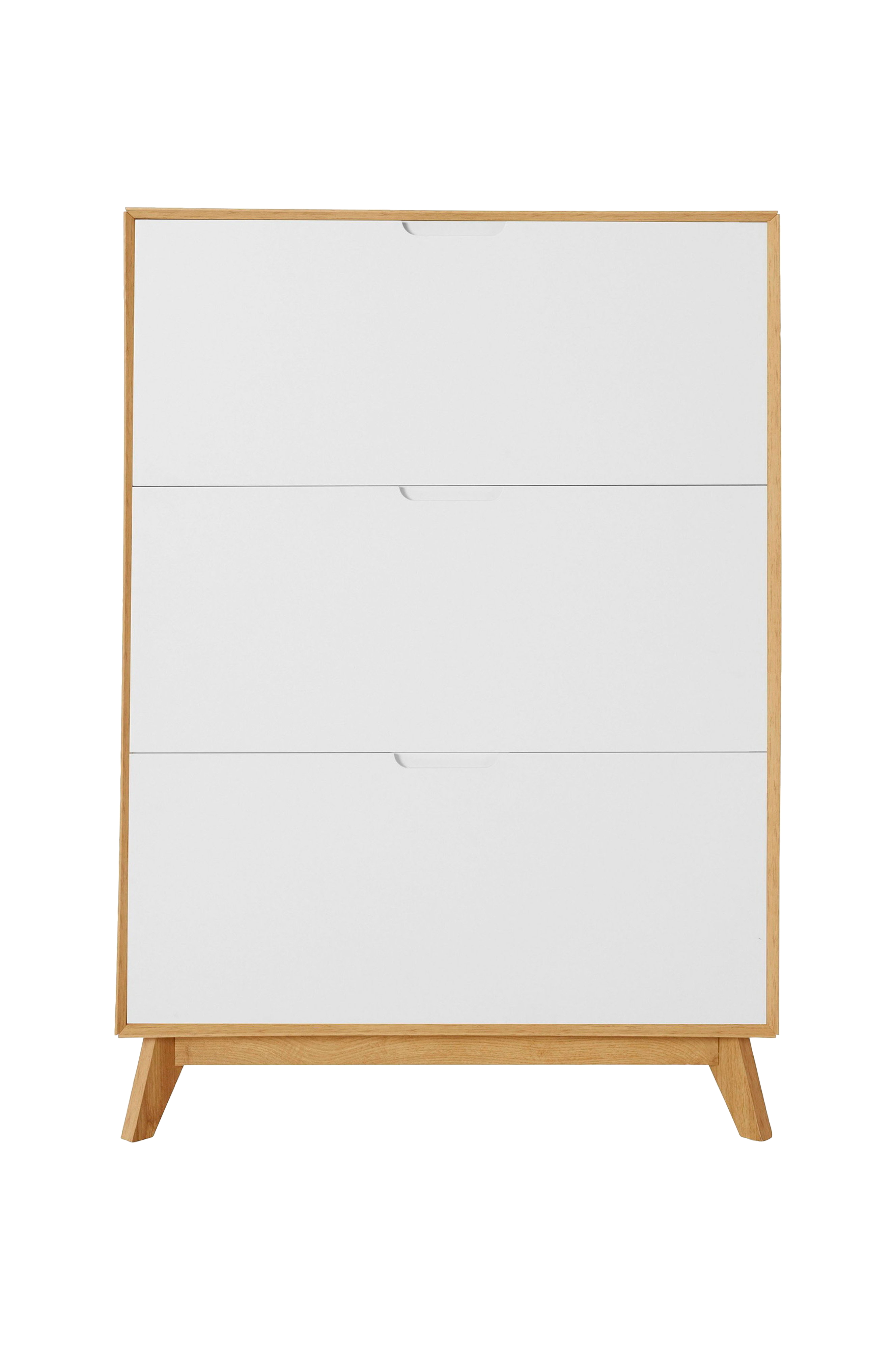 Dette stående skoskab giver dig ekstra opbevaringsplads, hvor du kan opbevare dine sko godt beskyttet. Skabet med tre klapper er hovedsageligt fremstillet af stabilt træmateriale og overbeviser derfor med sin solide robusthed. De puristiske, forsænkede greb er holdbare og understreger stilen. Dit nye møbel kan belastes med op til 20 kg. Træet passer godt sammen med andre naturmaterialer og sarte farver som creme, beige eller grå. Skokassen fås i to farver og størrelser og tilføjer et strejf af skandinavisk livsstil til dit hjem.