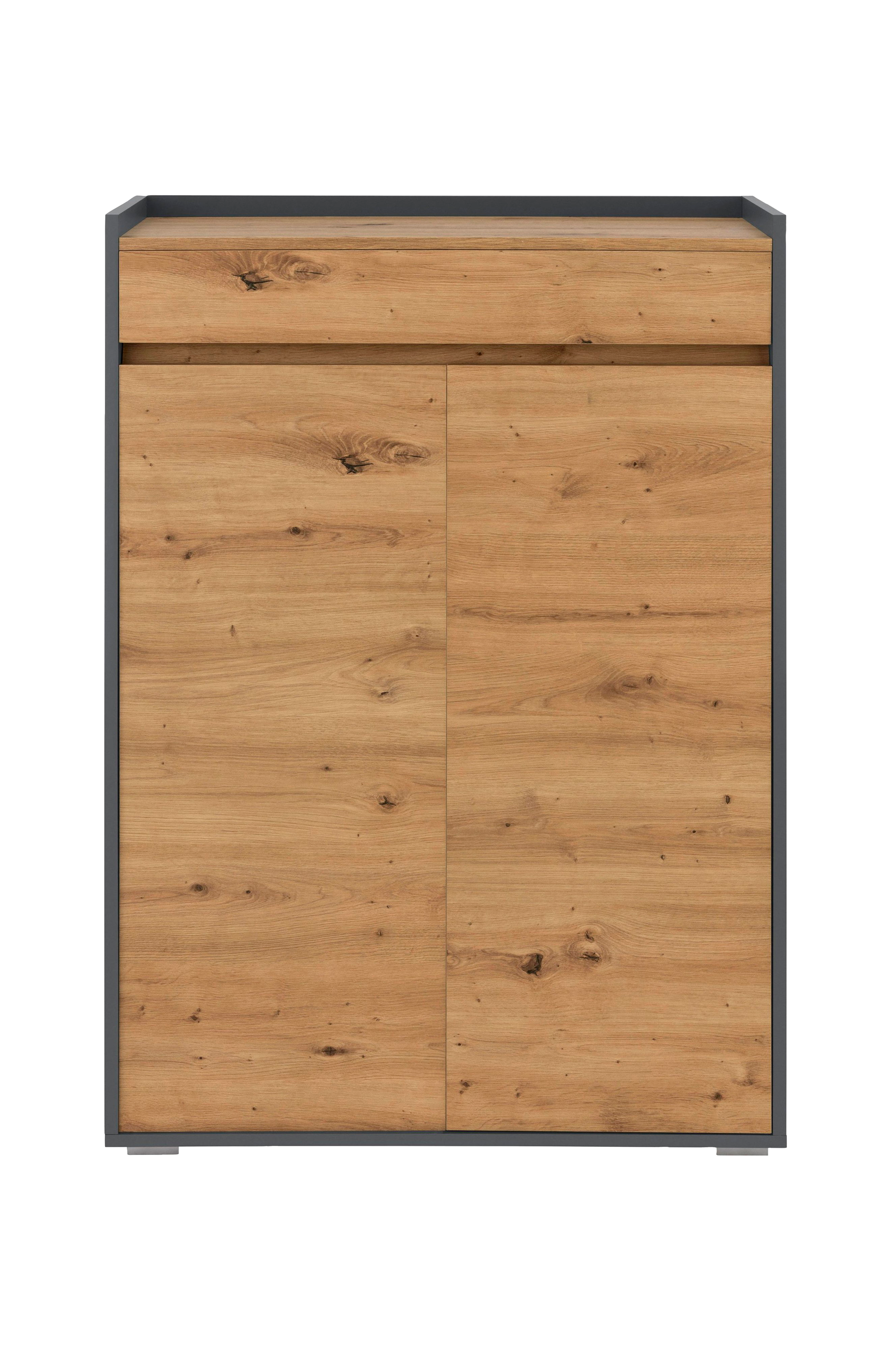Dette rene og minimale skoskab er en god opbevaringsmulighed til dit indgangsparti. Med sit enkle, moderne design kan det nemt kombineres med det eksisterende interiør og passer ind i alle hjem. Matte overflader og diskrete farver kendetegner udseendet. Bag lågerne har skokassen masser af plads til flere par sko. Ovenpå er den udstyret med en skuffe, hvor du kan opbevare småting. Takket være en melaminbelægning imponerer skoboksen med sine ridsefaste egenskaber. Fås i to farver.