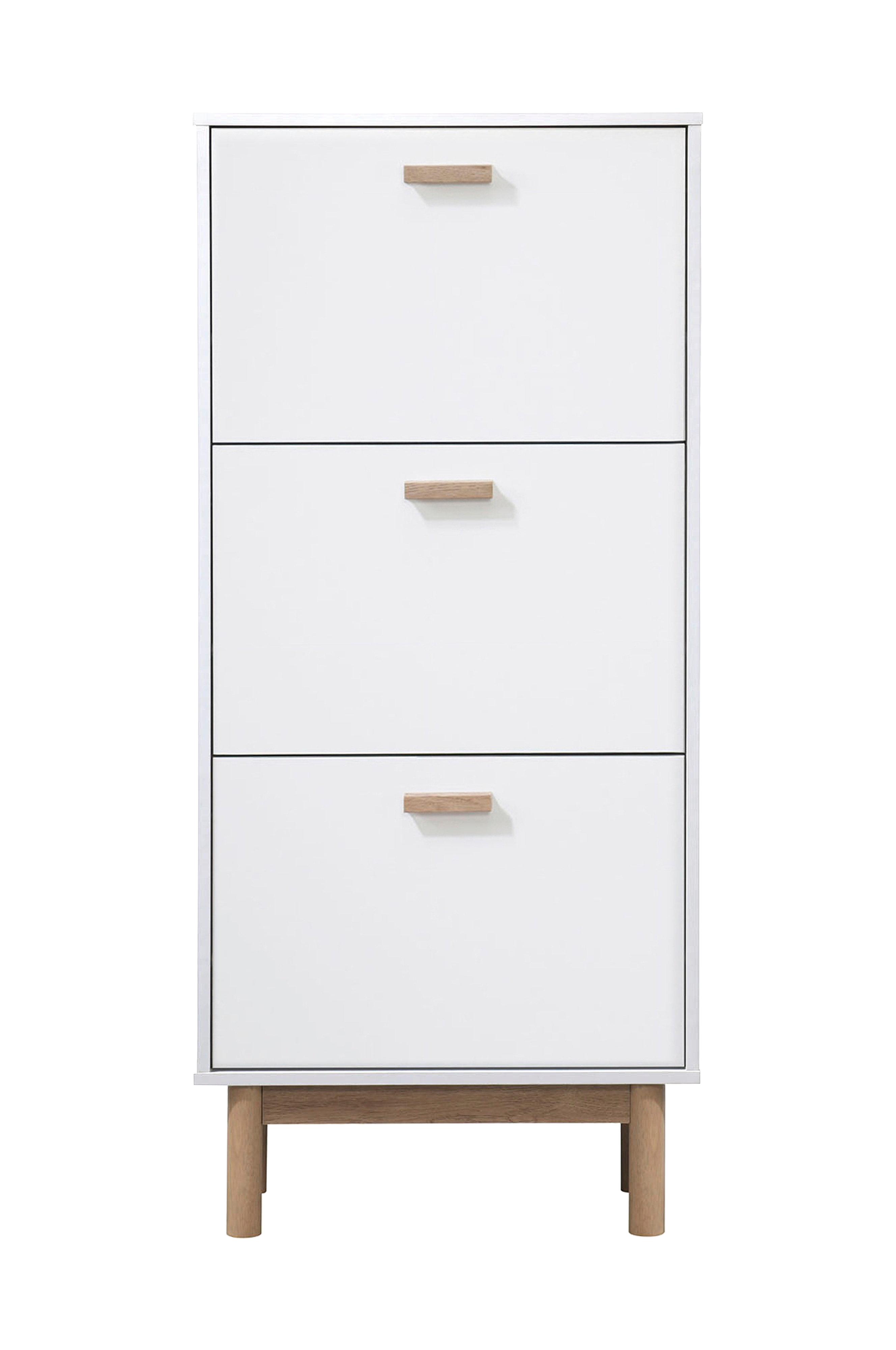 melanie skoskabet er et praktisk og elegant møbel, som hjælper dig med at organisere dine sko. Skokassen er lavet af mdf-folie, et glat og blankt materiale, der er let at rengøre og vedligeholde. Skokassen har tre klapper, der åbner for at afsløre rummelige rum, hvor du kan opbevare dine sko pænt og bekvemt. Skokassen har træben, der giver stabilitet og stil. melanie skoskabet har et slankt og moderne design, der passer til enhver indretning. melanie er en god måde at holde orden på dine sko og have dem inden for rækkevidde.