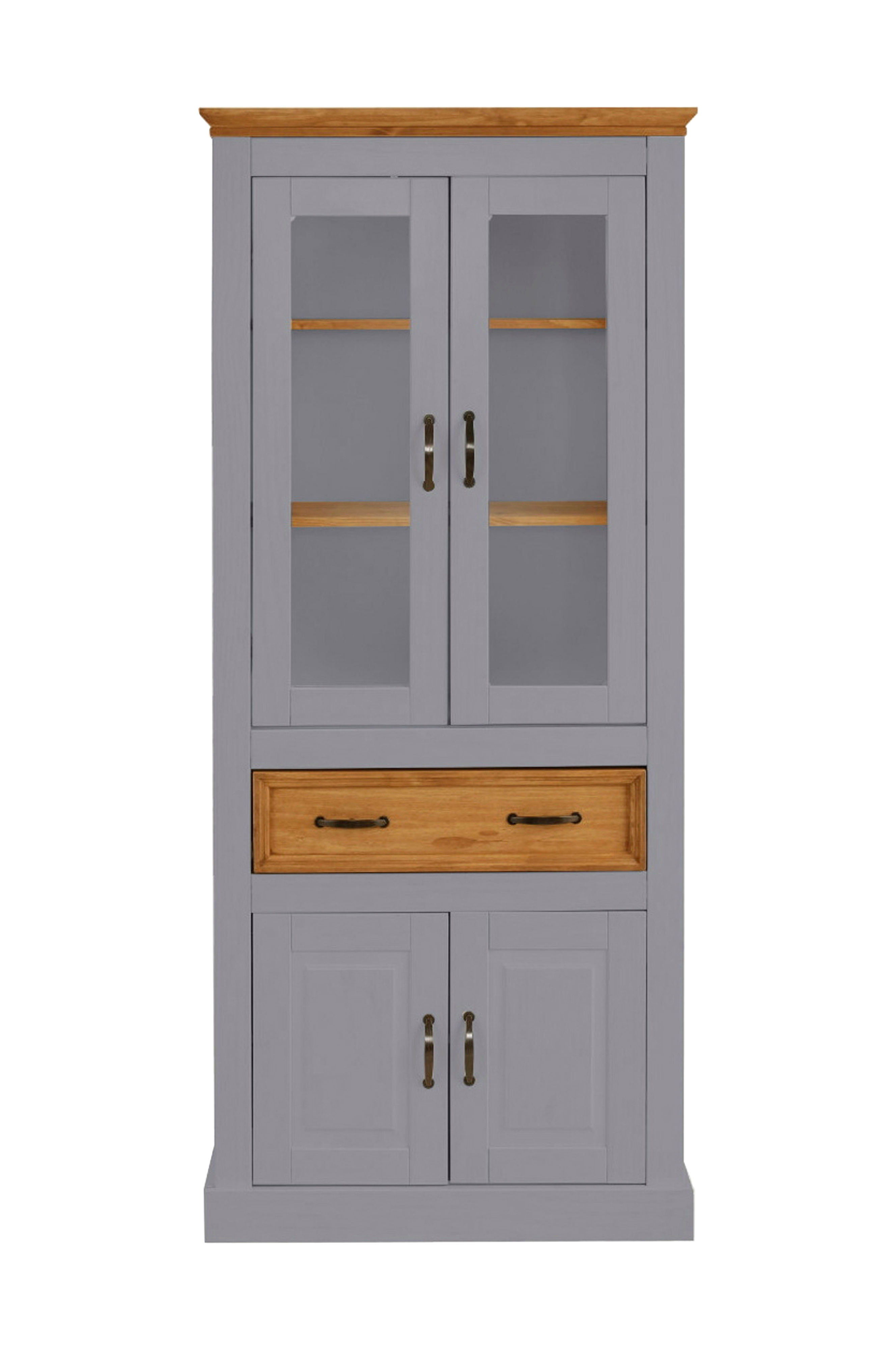 Vitrineskabet imponerer med sin naturlige charme, som er synlig i form af træstrukturer og grene. Derudover er håndtagene af antikveret metal et harmonisk blikfang, der fuldender skabet. Ud over det smagfulde udseende forstår vitrineskabet også at afsløre nyttige funktioner. Bag trælågerne med glaspaneler finder man justerbare træhylder. Lige nedenunder er der en skuffe, som afslører en masse opbevaringsplads.