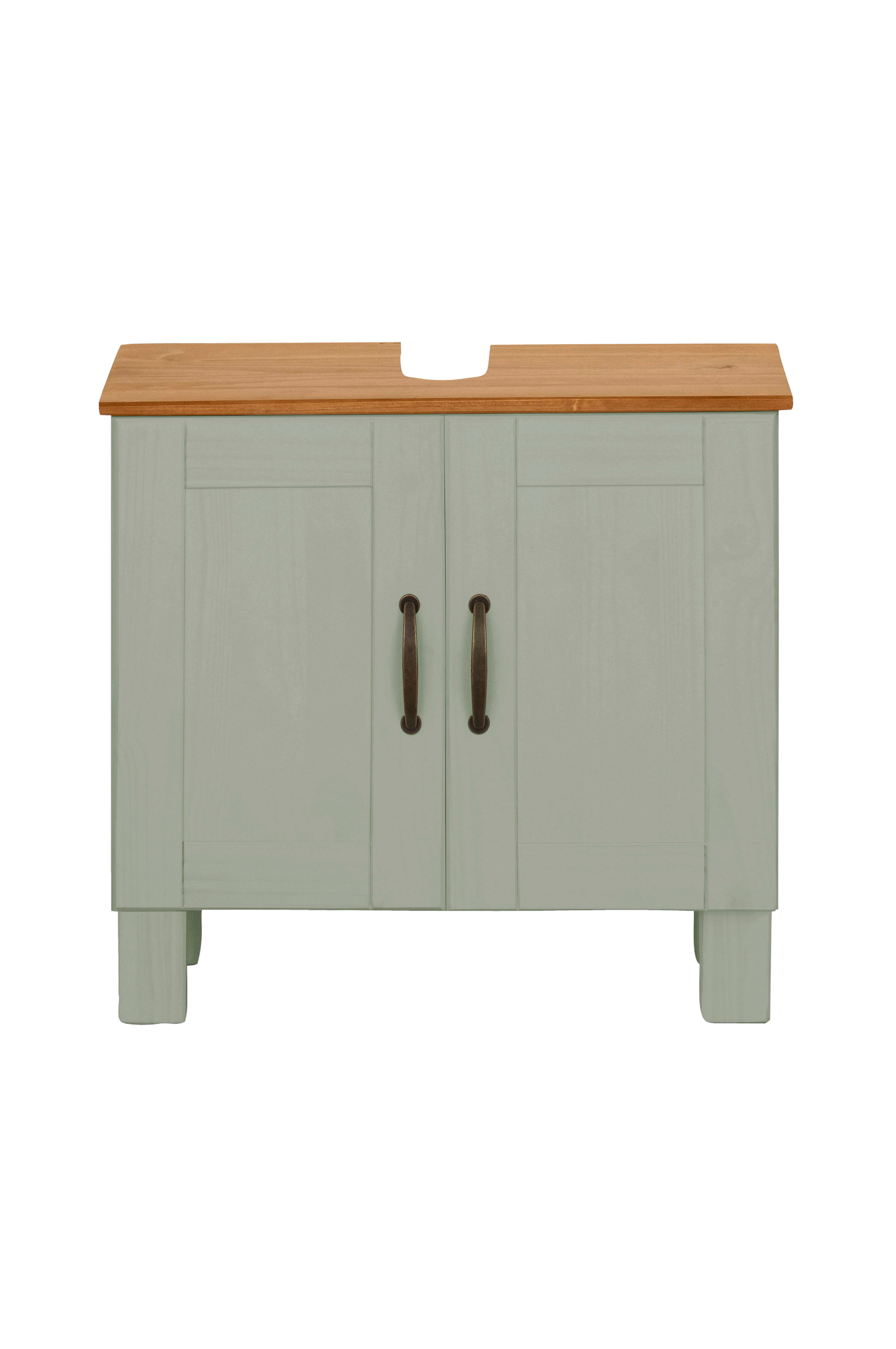 Dette underskab er lavet af massivt træ og skaber ikke kun orden, men også en behagelig naturlig atmosfære i dine fire vægge. Voksen på overfladen gør træet mindre følsomt over for snavs og fugt. Metalhåndtagene er holdbare og tilføjer stil. Den maksimale belastningskapacitet er omkring 15 kg, og skabet fås i flere farver. Badeværelsesenheden udstråler landlig romantik. Sammen med for eksempel møbler af træ eller rattan suppleres den hjemlige atmosfære stilfuldt. Denne badeværelsesserie kombinerer kvalitet med smukt design og tilbyder praktiske løsninger til dit badeværelse.