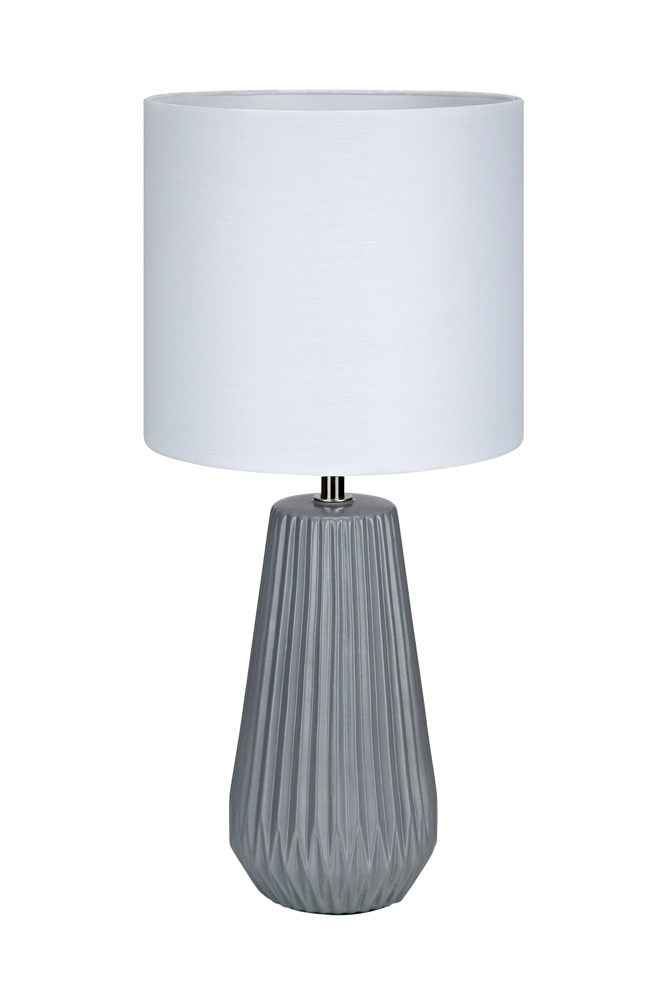 Nicci bordlampe fra Markslöjd. Base af keramik og lampeskærm af tekstil. 2 meter stofledning med afbryder. E14-sokkel velegnet til halogen eller LED. Lyskilde medfølger ikke. Længde 19, bredde 19, højde 41 cm.