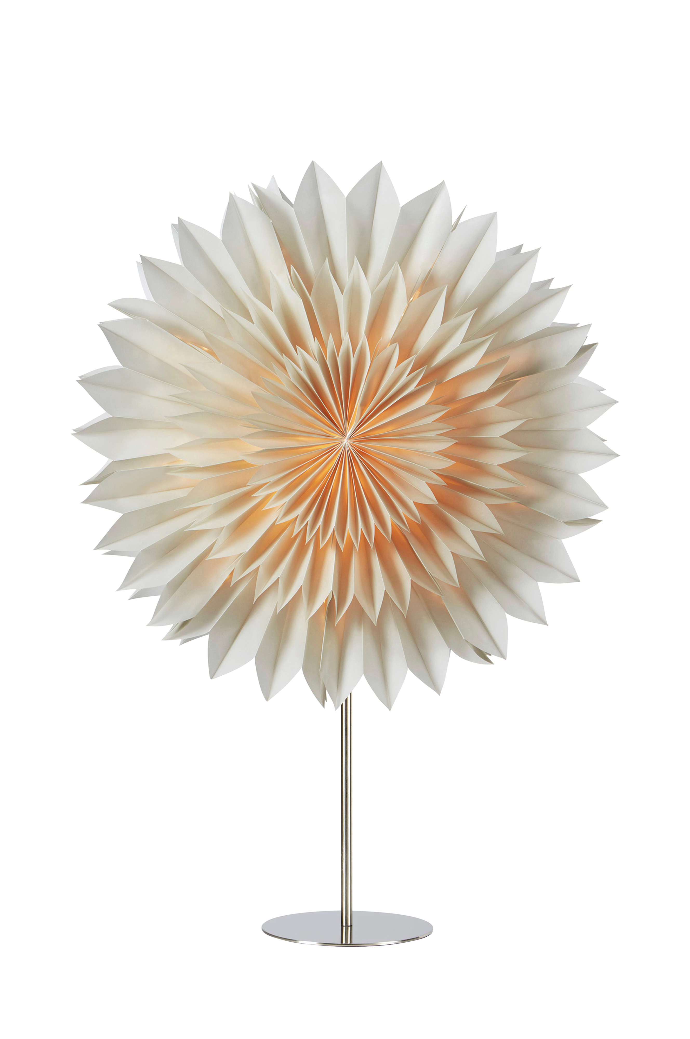 Solina bordstjerne fra Markslöjd. Fod i metal med papirstjerne på 45 cm. 2 meter sort PVC-ledning med afbryder på ledning og stik. 1xE14 sokkel, Maks. 6W LED. Pære medfølger ikke.