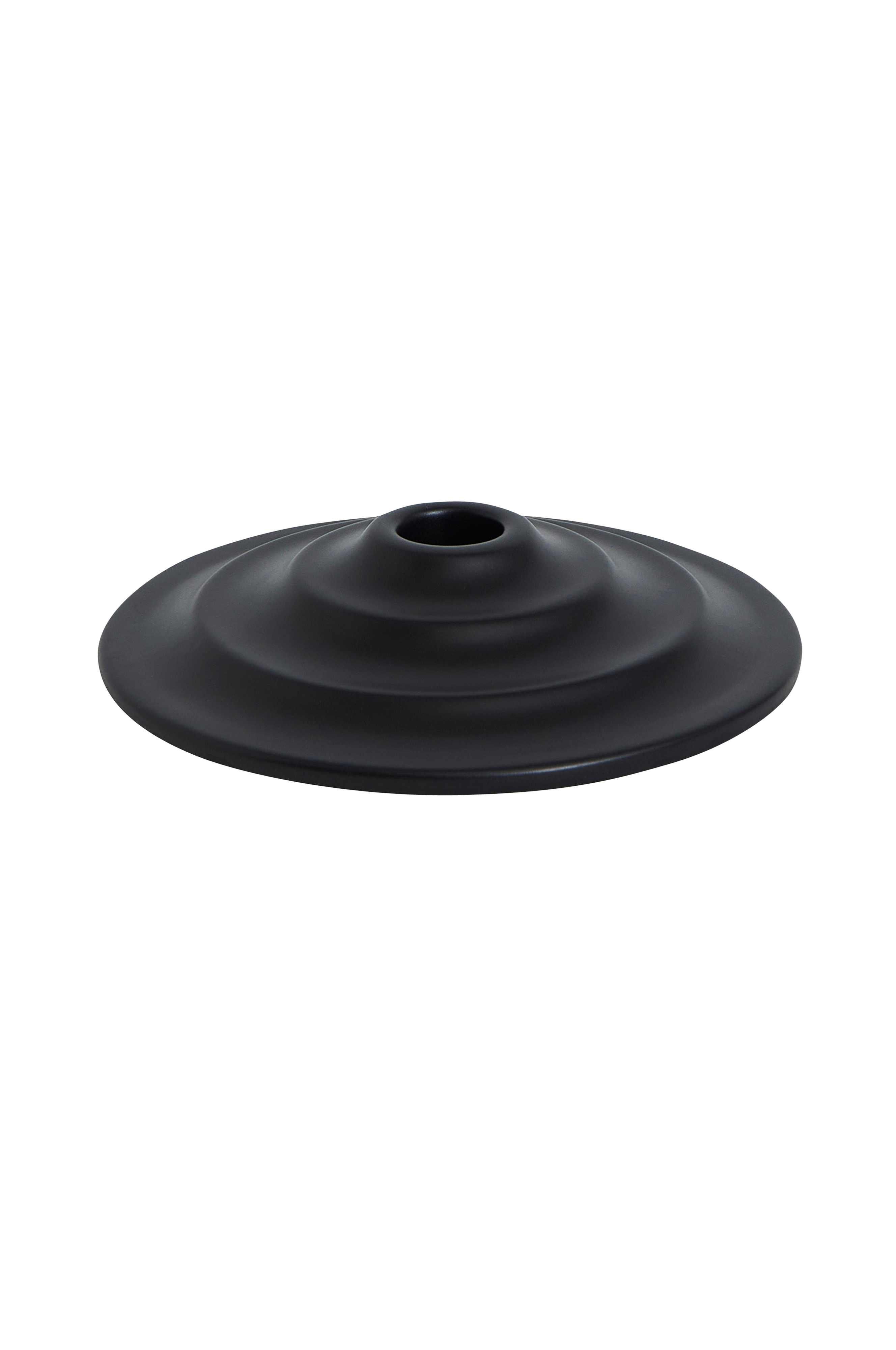 Lysestage der kan skilles ad og bruges både til fyrfadslys og kronelys. Af keramik i mat farve. Diameter 15 cm og højde 3 cm. Fremstillet i Europa. Funktionelt design af Monika Mulder.