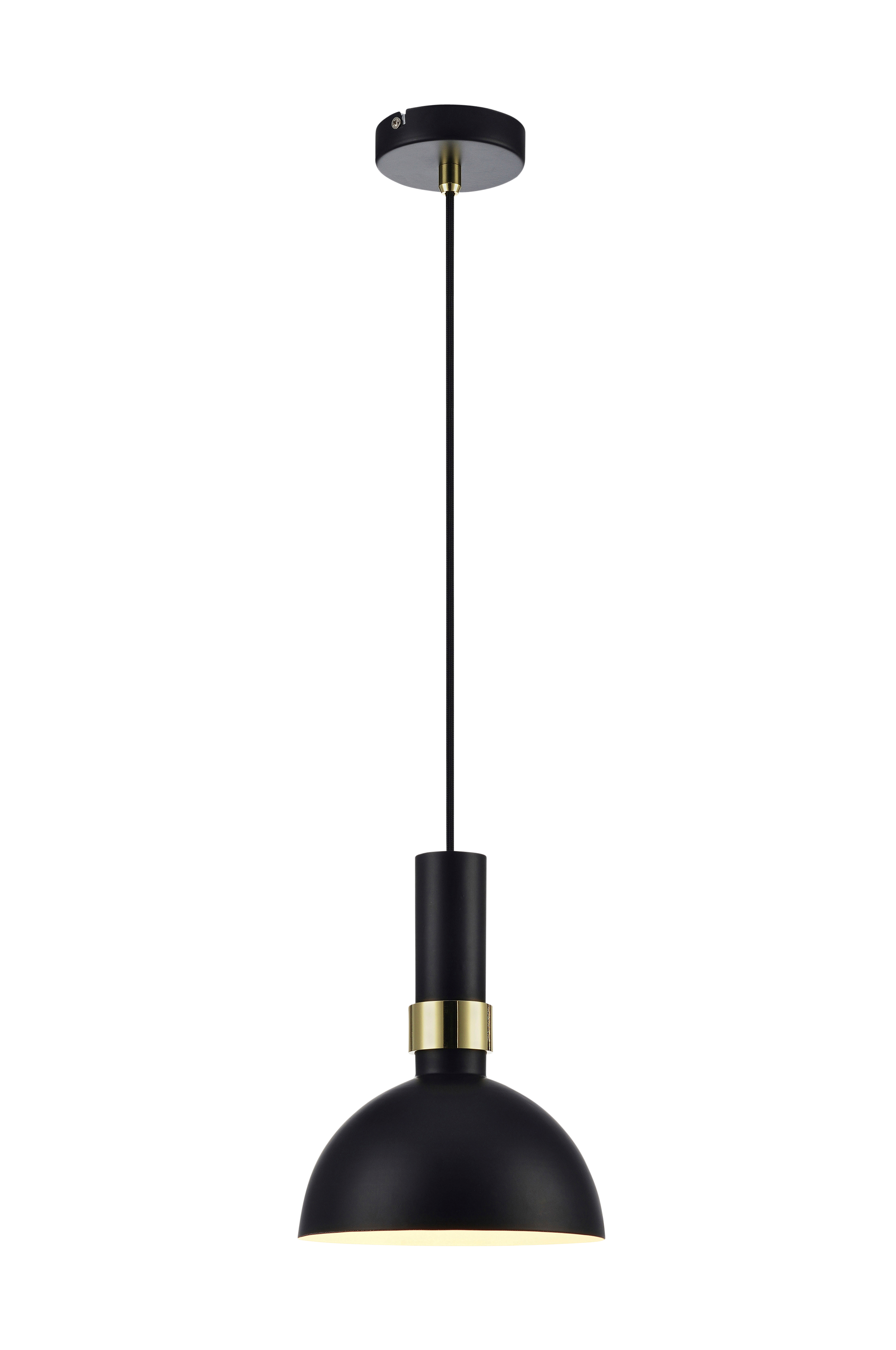 Larry loftlampe fra Markslöjd i sort metal og børstet messing. 1,5 m sort stofledning. Fast installation med bøjleophæng. Stor fatning E27. Maks. 60 W glødepære eller tilsvarende styrke i halogen, lavenergi eller LED. Design Monika Mulder. Loftkontakt medfølger ikke pga. nyt EU-direktiv. De kan købes separat. Højde 24 cm, diameter 19 cm.