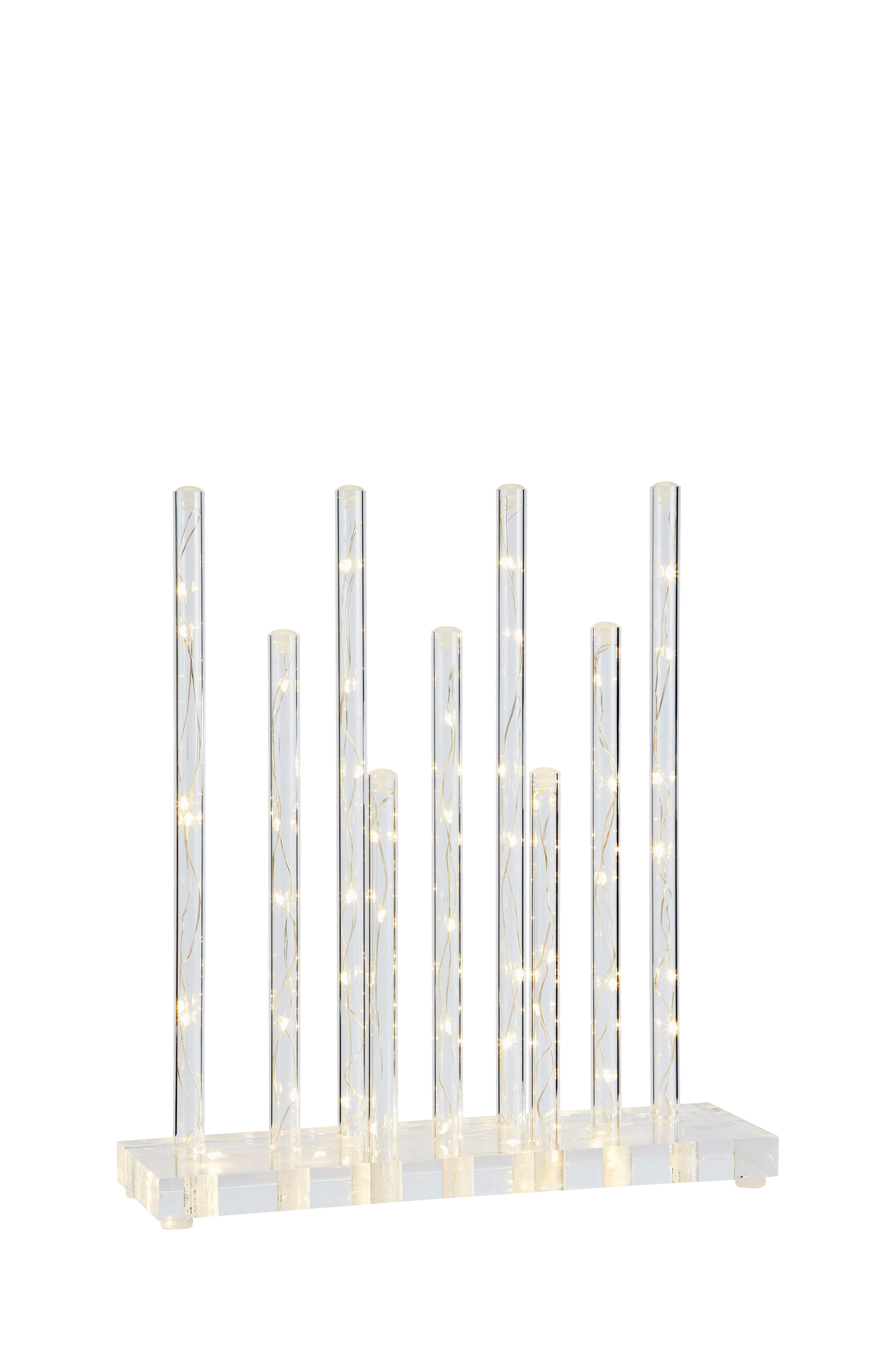 Bliss lysestage i akryl fra Markslöjd. 3 meter kabel med plug-in transformator. 55 LED-lyskilder med varmt hvidt lys på forkromet tråd. Design Klas Forsberg.