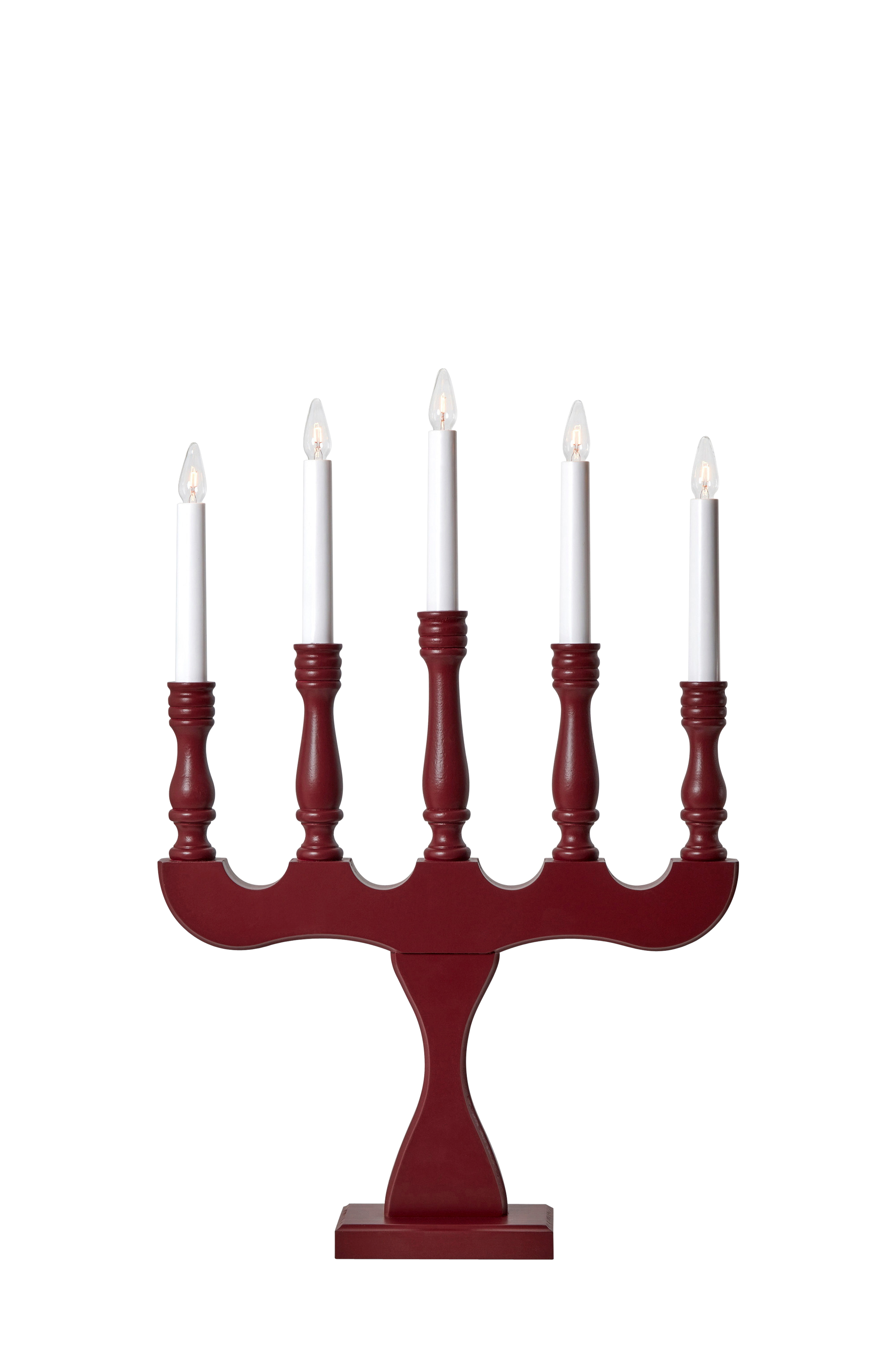 Svaneholm Lysestage fra markslöjd. Base i hvidt træ og lys i hvid plast. 2 m hvidt pvc-kabel med afbryder på ledning og vægstik. 5xe10, maks. 3w. Lyskilder medfølger.
