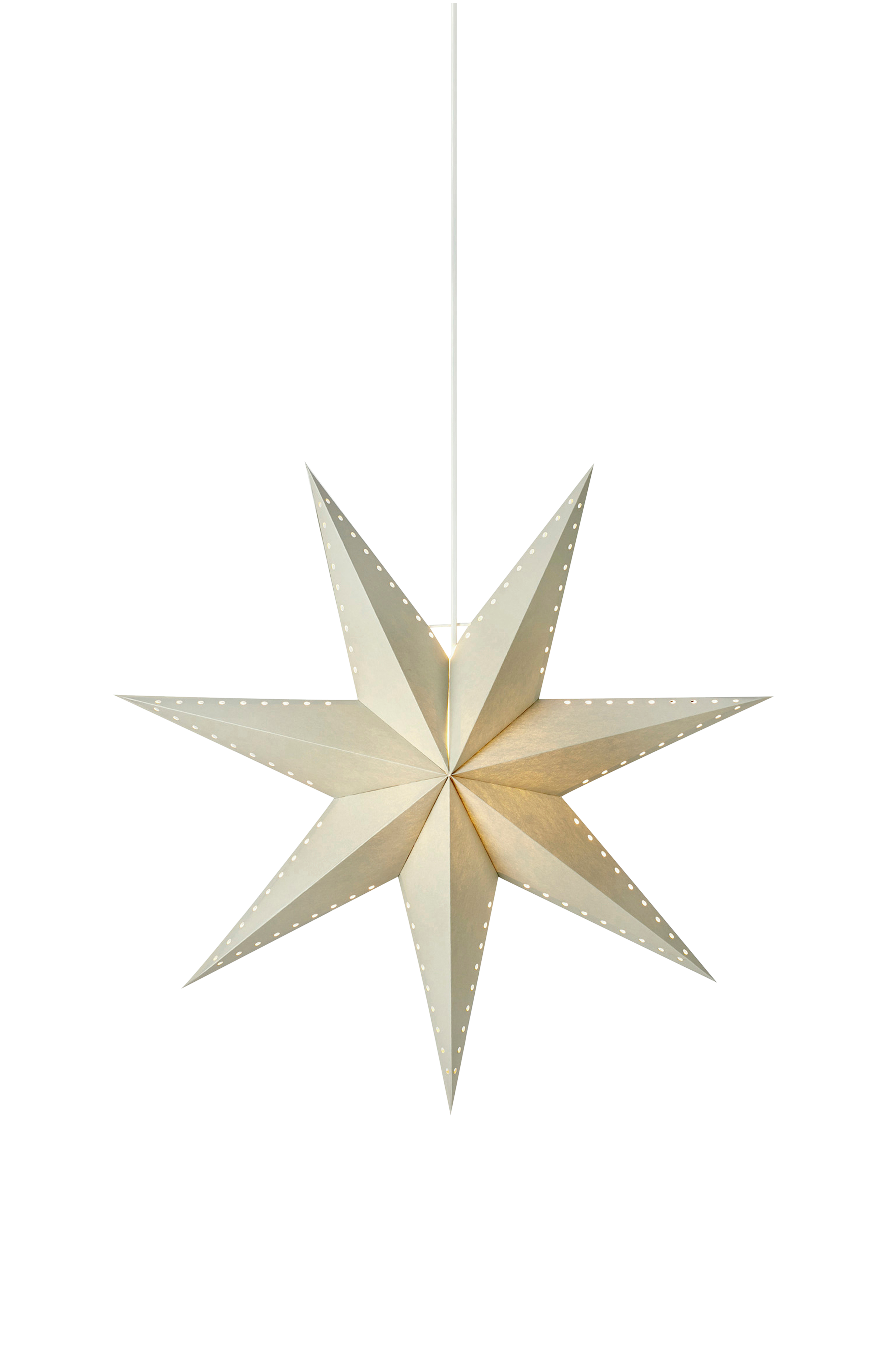 Lively pendelstjerne fra Markslöjd. Papirstjernen er 60 cm. 3,5 meter hvid PVC-ledning med afbryder på ledning og stik. 1xE14 sokkel, Maks. 6W LED. Pære medfølger ikke.