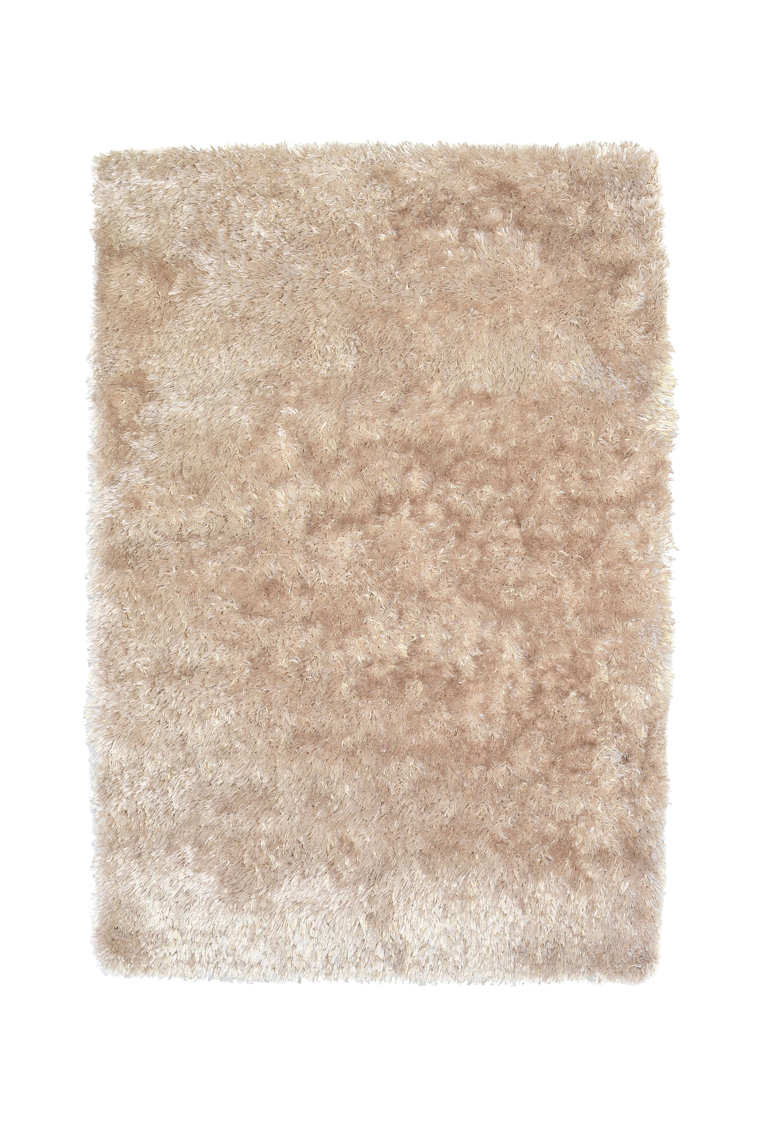 Blødt, lidt blankt ryatæppe i syntetisk materiale.