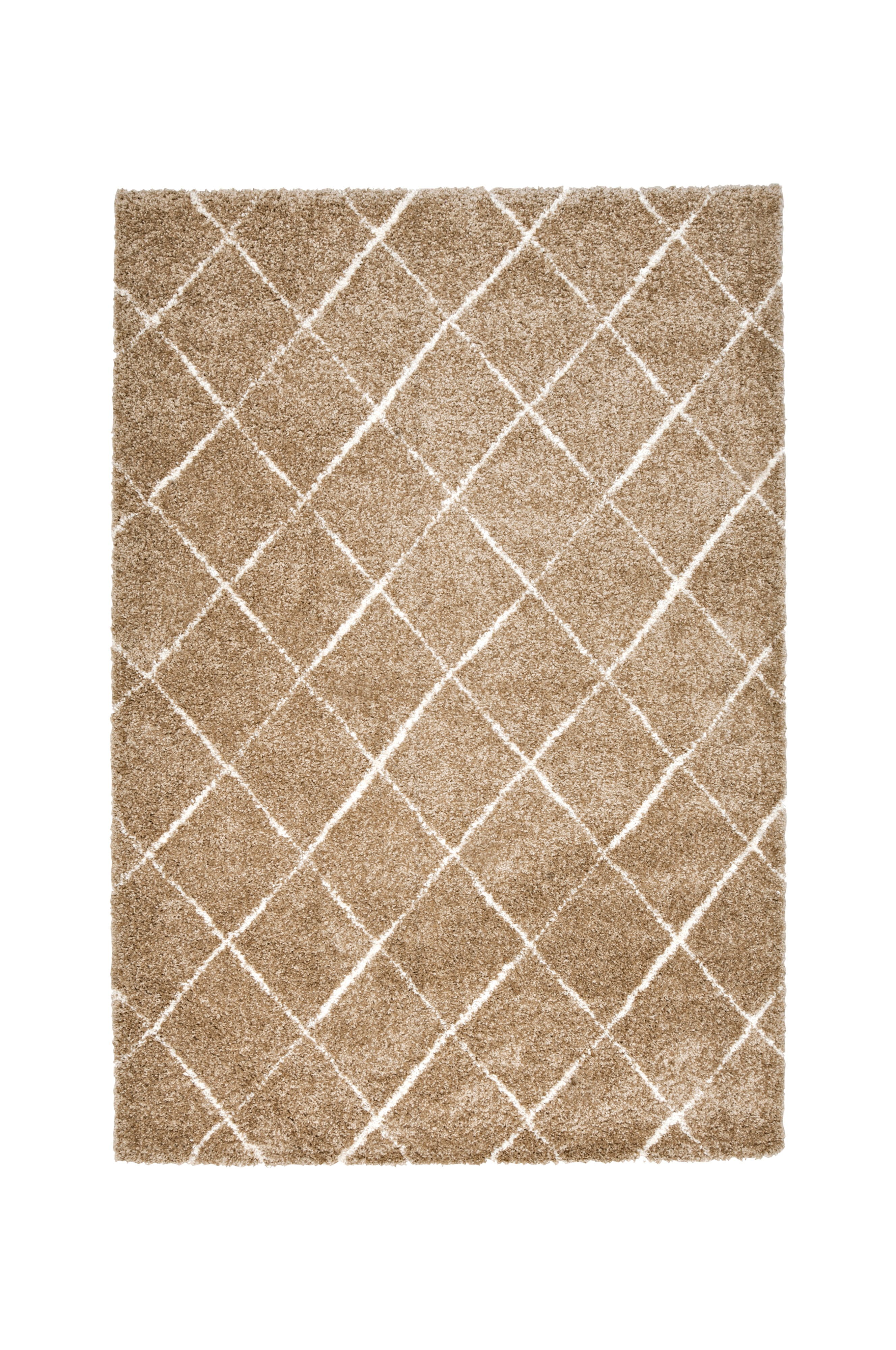 Mønstret ryatæppe i beige med offwhite mønster.