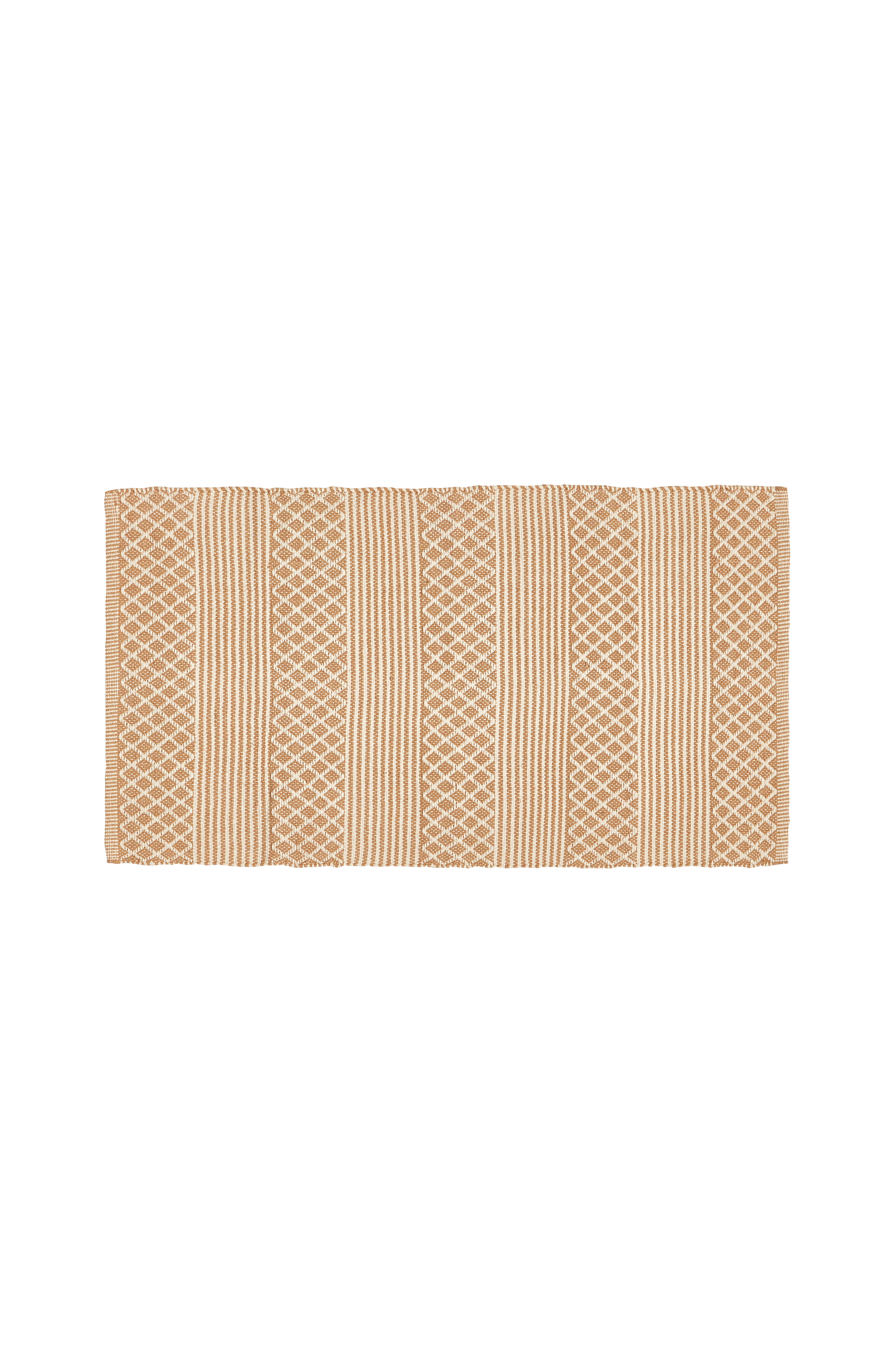 Garntæppe i et klassisk gammeldags mønster, der giver et hyggeligt indtryk. Passer lige så godt i køkkenet som i soveværelset