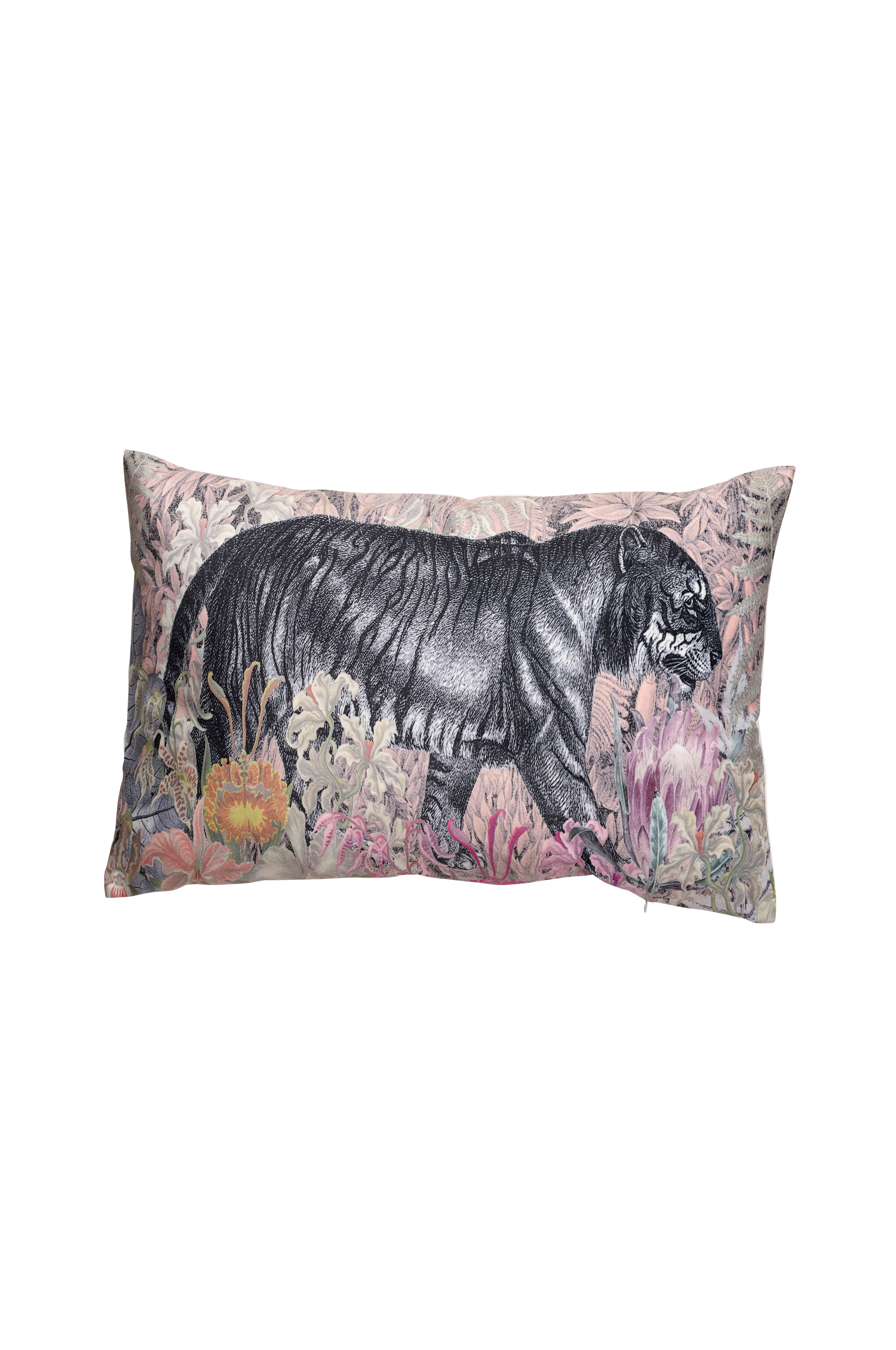 Pudebetræk i velour med ensfarvet bagstykke i creme. Skjult lynlås i kant forneden. Str. 60x60 cm. Vask 30 grader