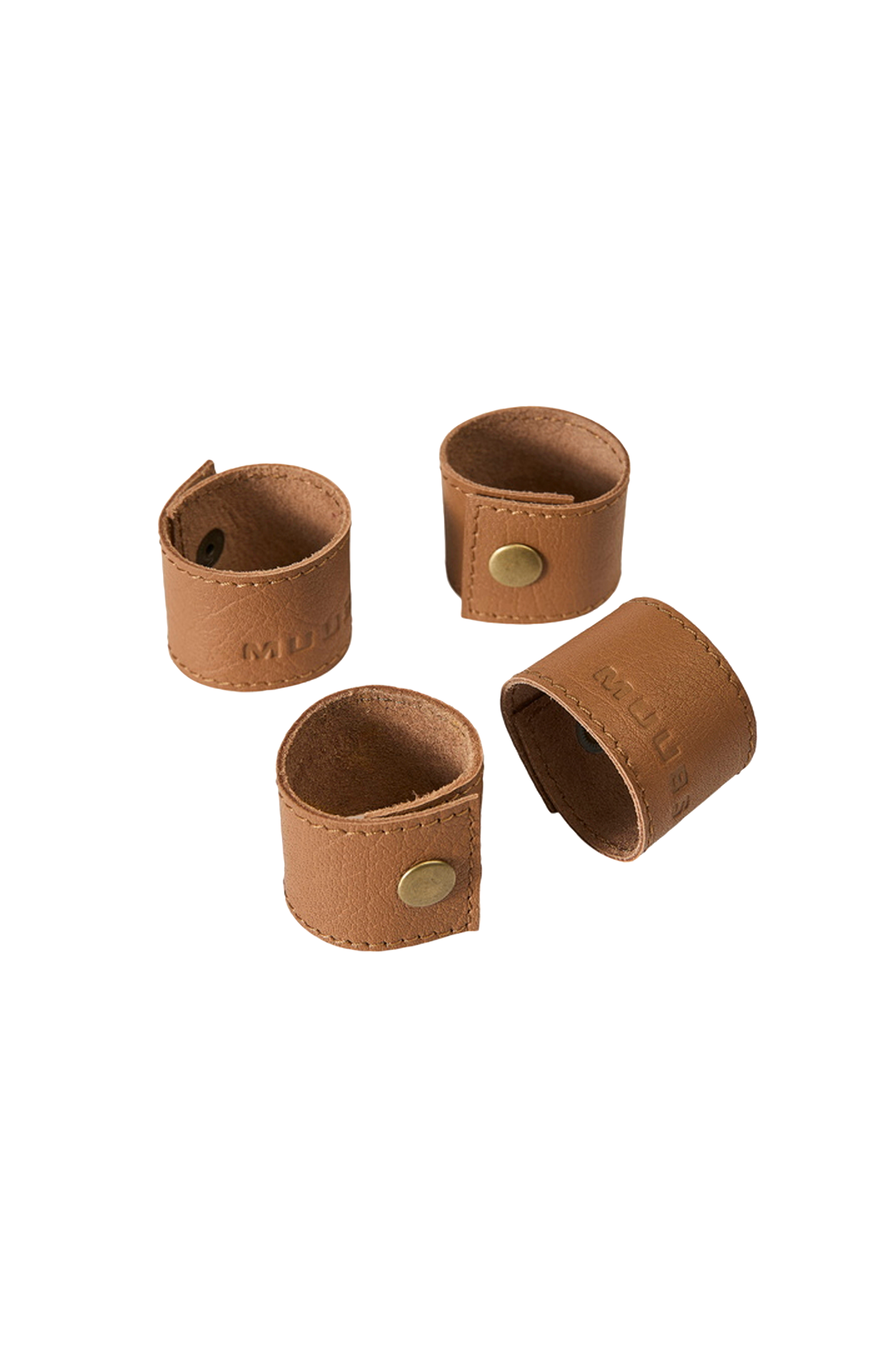 Camou-servietringene i sort bøffellæder tilfører øjeblikkeligt tekstur og kontrast til enhver borddækning. Servietringene er designet med inspiration fra naturens rå skønhed og kombinerer funktionalitet og tidløs elegance. Lad hver servietring elegant omfavne dine servietter til særlige lejligheder eller tilføje et ekstra touch til en afslappet borddækning. Brug dem med hør- eller bomuldsservietter for et naturligt look. Servietringen skaber en afslappet, men stilfuld præsentation af servietten og lukkes med et elegant metalspænde. Servietringene er lavet af eksklusivt bøffellæder, der er valgt for sin holdbarhed og naturlige skønhed. Med tiden vil læderet udvikle en smuk patina og blive blødere. For at opfriske farven anbefales det at bruge læderbalsam. Læderet er et naturmateriale, og derfor vil hver servietring have sine egne unikke variationer i tekstur og farve, hvilket gør hver ring helt speciel. Hvert sæt indeholder fire individuelle servietringe.