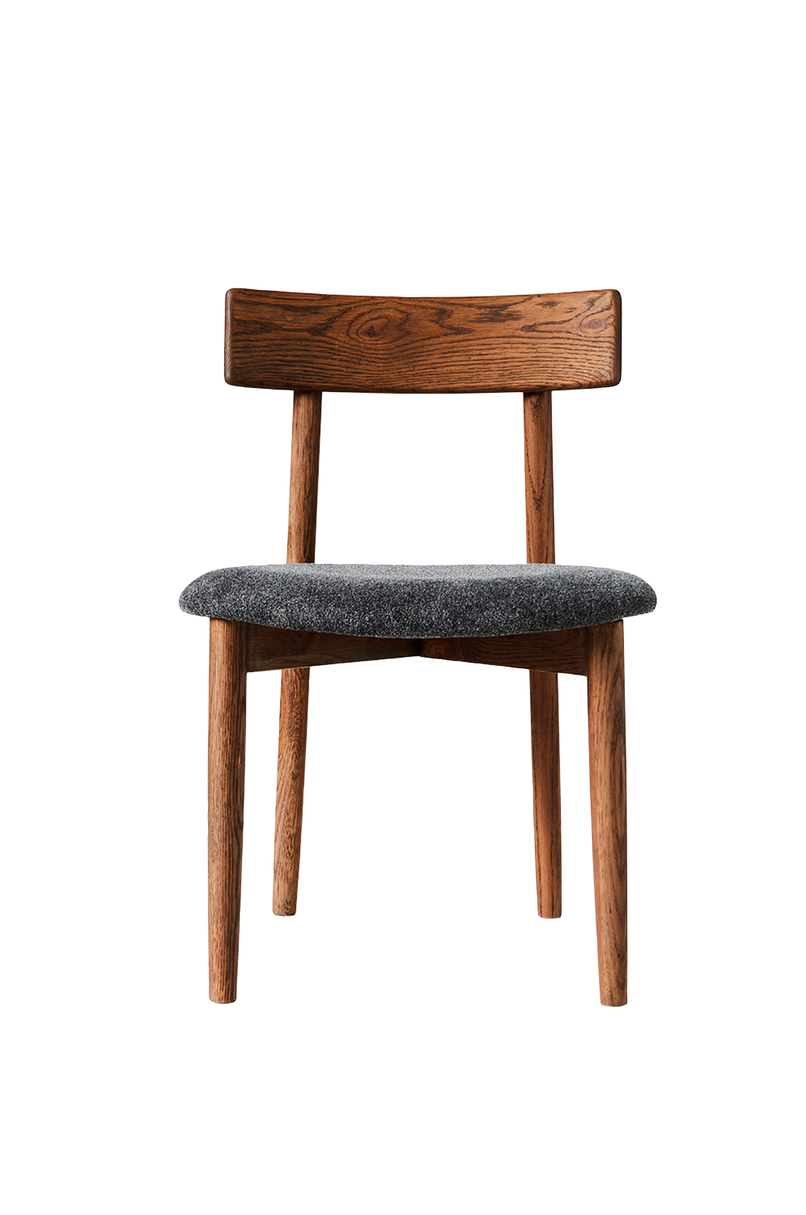 Stolen er skabt med enkle detaljer og et blødt, gråtonet sæde, som tilsammen danner et smukt farvespil med masser af dybde. Det brede sæde giver god støtte, og stolen opnår et sammenhængende udtryk.