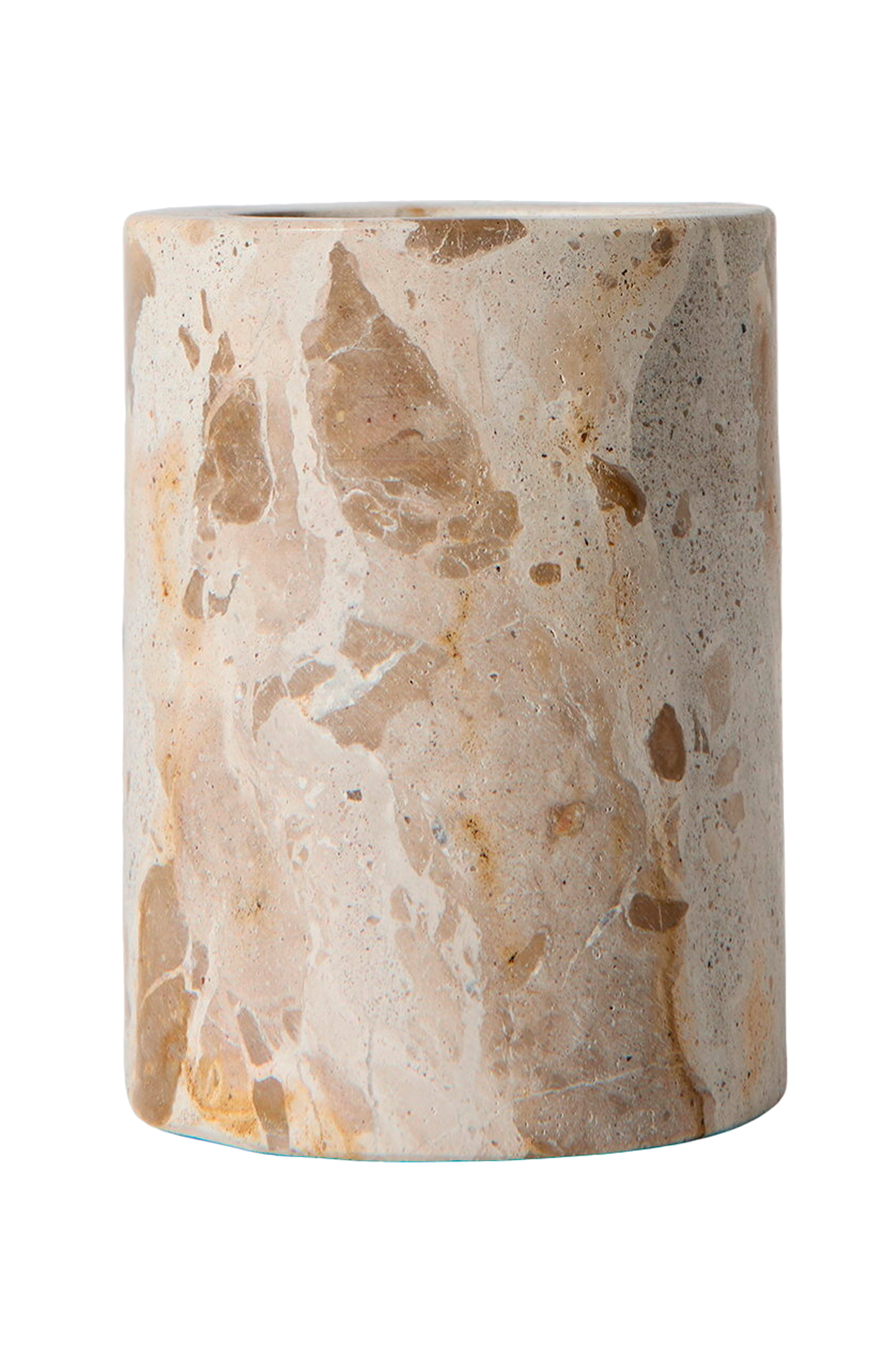 Vita-tandbørsteholderen er en elegant og praktisk løsning til opbevaring af tandbørster på badeværelset. Den er stilfuld og alsidig og fungerer perfekt alene eller sammen med de andre marmorelementer i badeværelsesserien. Den kan også bruges i køkkenet til at holde opvaskebørster.