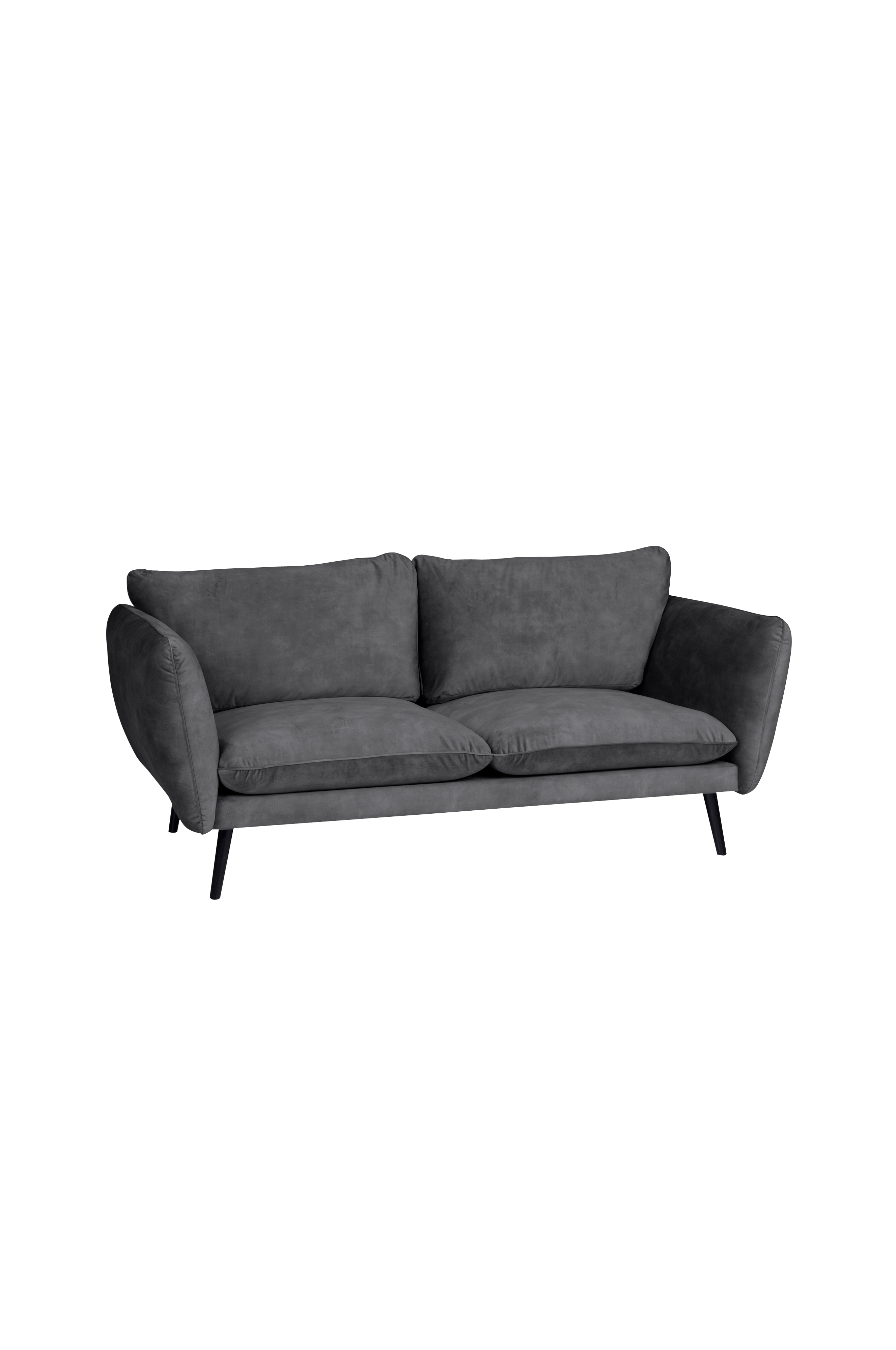 2,5-pers. sofa. Fyld: Sæde, koldskum med duntop. Ryg, silikone med dun. Sortbejdset træben. Stof: Martindale 88.000, 100% polyestervelour. Mål bredde 202, dybde 101, højde 87 cm. Siddehøjde 45, siddedybde 81 cm.